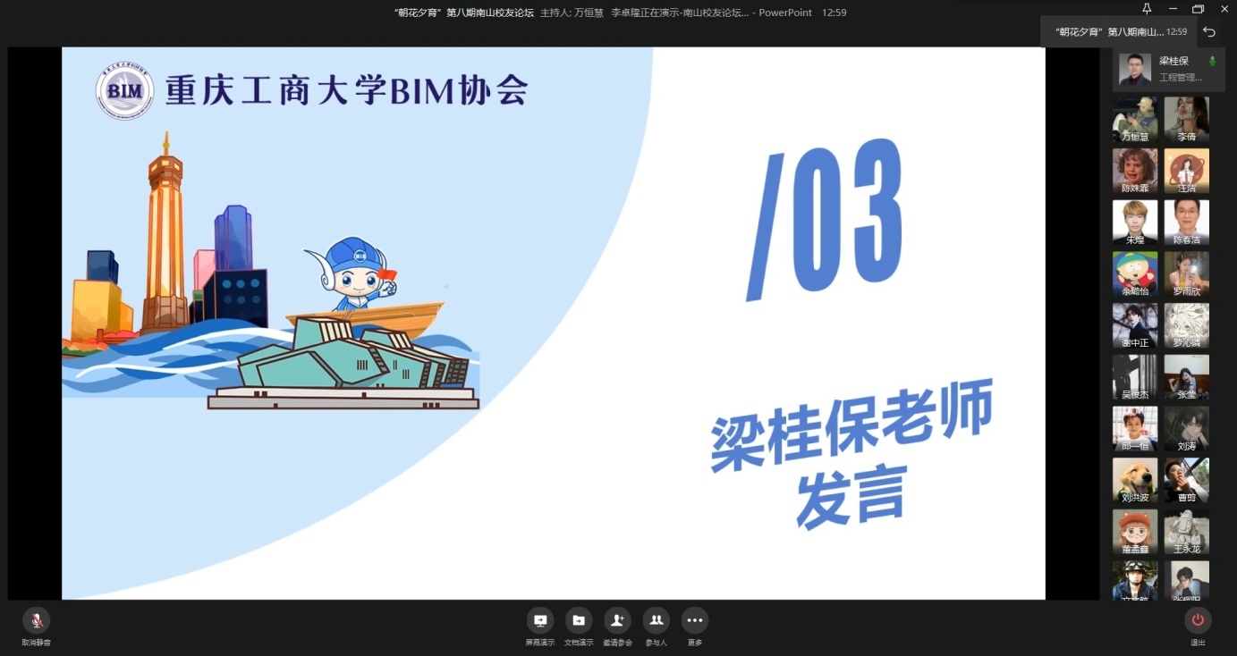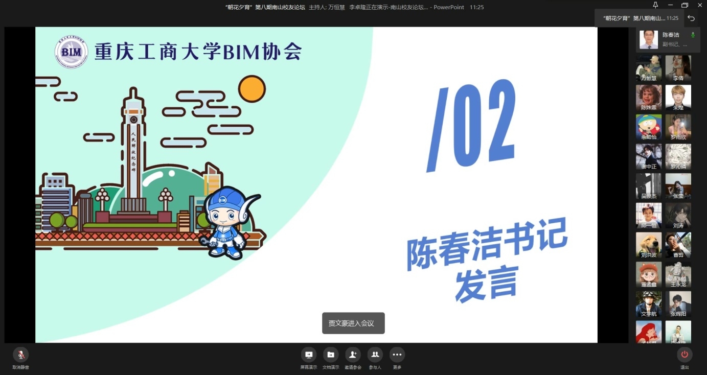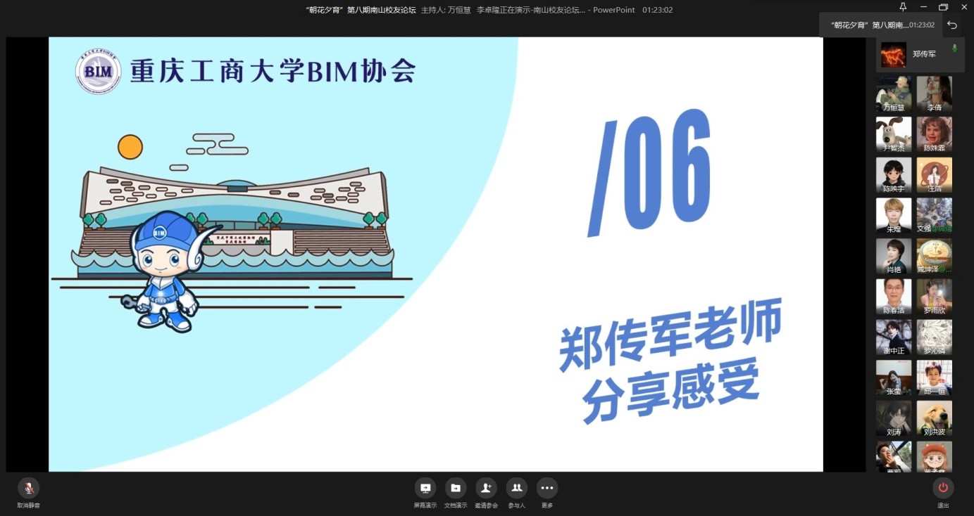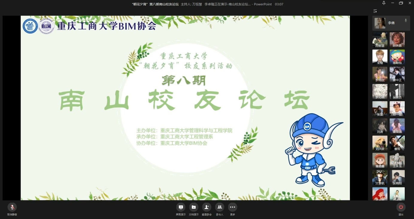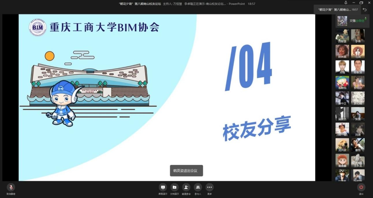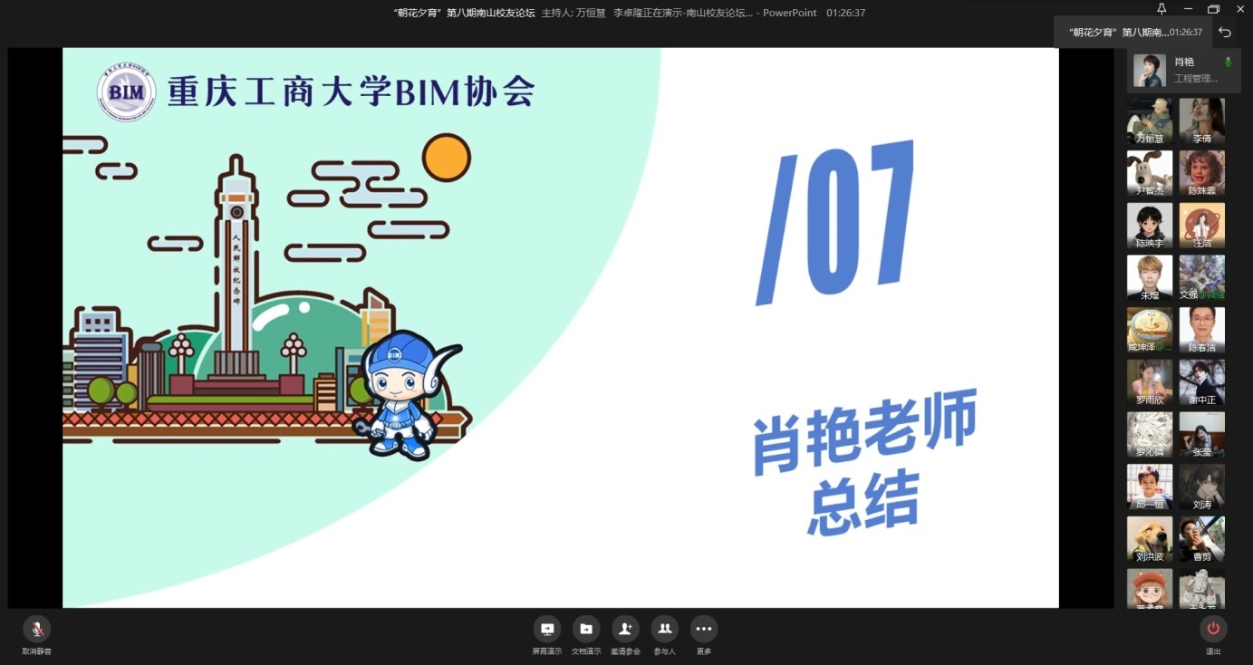 12月4日晚20:00,由333体育主办,工程管理系承办,BIM协会协办的第八期南山员工论坛以企业微信会议的方式圆满完成。本次活动以朋辈交流楷模故事的方式在学院老员工中弘扬榜样力量,通过分析求职方向以及未来的行业形势改变,让老员工们对以后的就业形势加以了解。