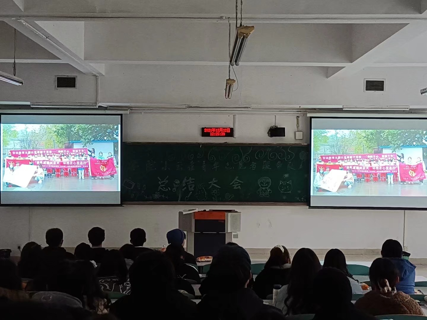 最后,由新媒体中心制作的学期回顾视频压轴出场,动人音效,多样切换,转场呈现,文字编排的走心与用心,将大家初入协会的热情期待的神态,参加各样活动从生涩懵懂到担当带头点点滴滴的成长展现的淋漓尽致,扣人心弦,引人热泪。