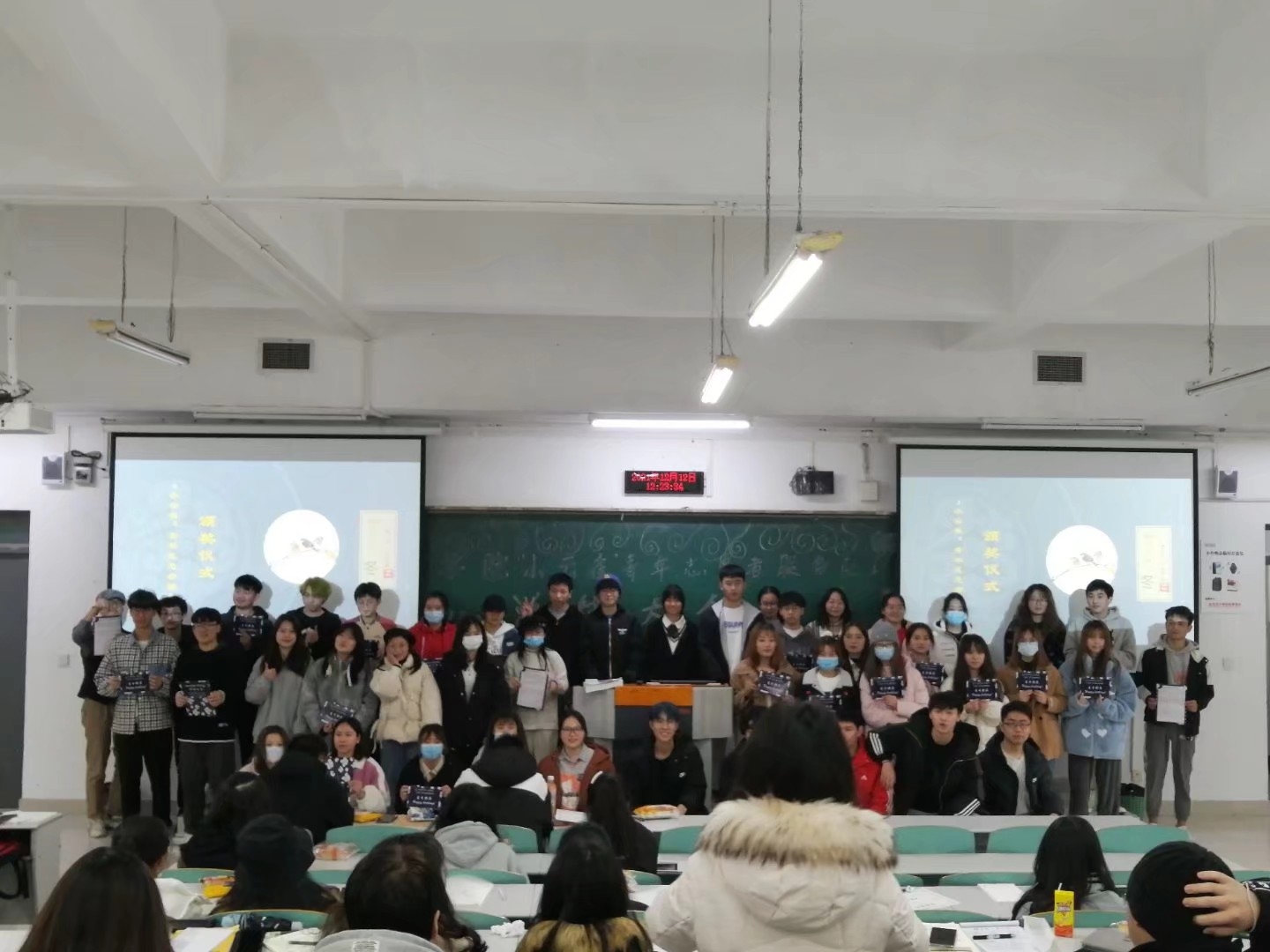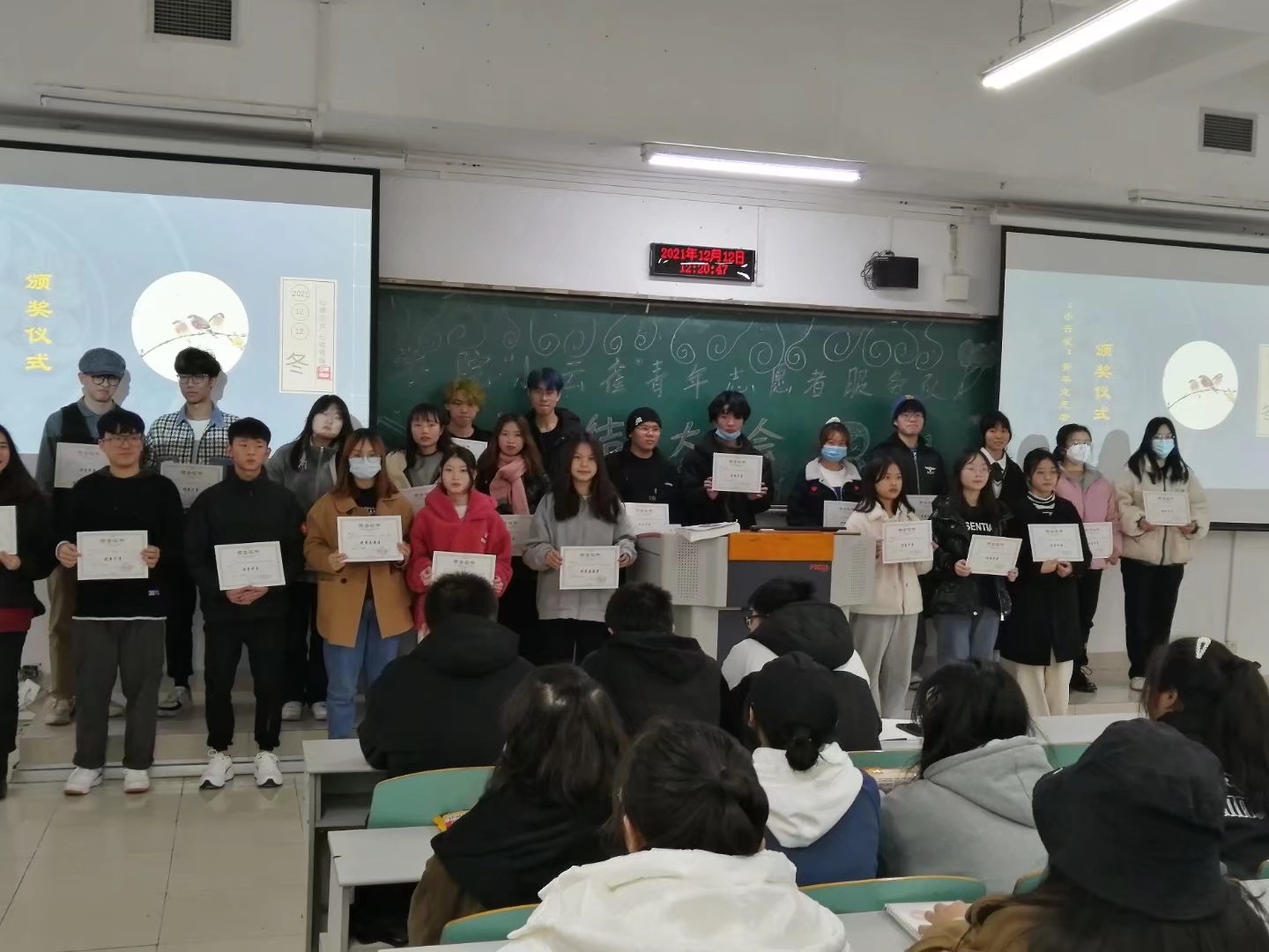 随后,进入颁奖与送生日祝福环节。通过对协会成员在工作以及在参加活动中各方面的表现进行综合考评,共有21名成员荣获“优秀干事”、“优秀志愿者”荣誉称号,分别由部分负责人为他们颁发,期待他们在下学期有更加优异的表现;同时按照协会惯例,协会各成员用真挚的情感,文字的力量为生日即将到来的成员准备了生日贺卡,送上了最真诚的祝福。