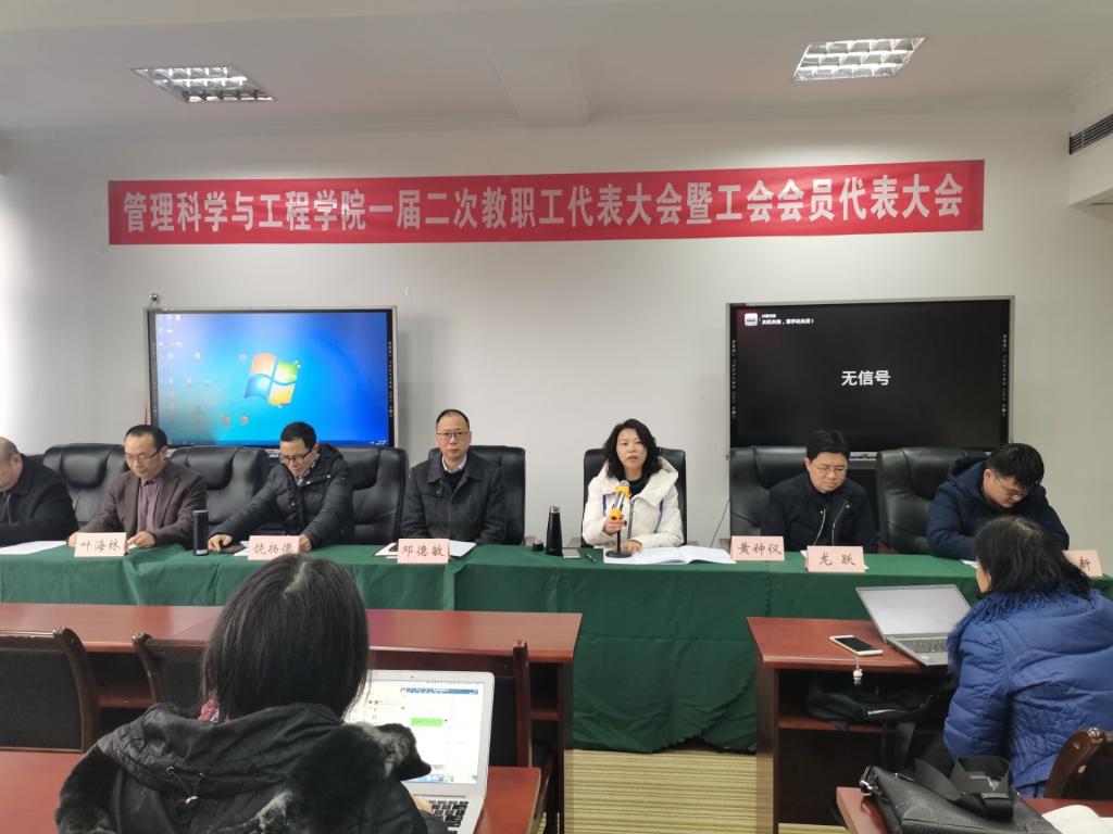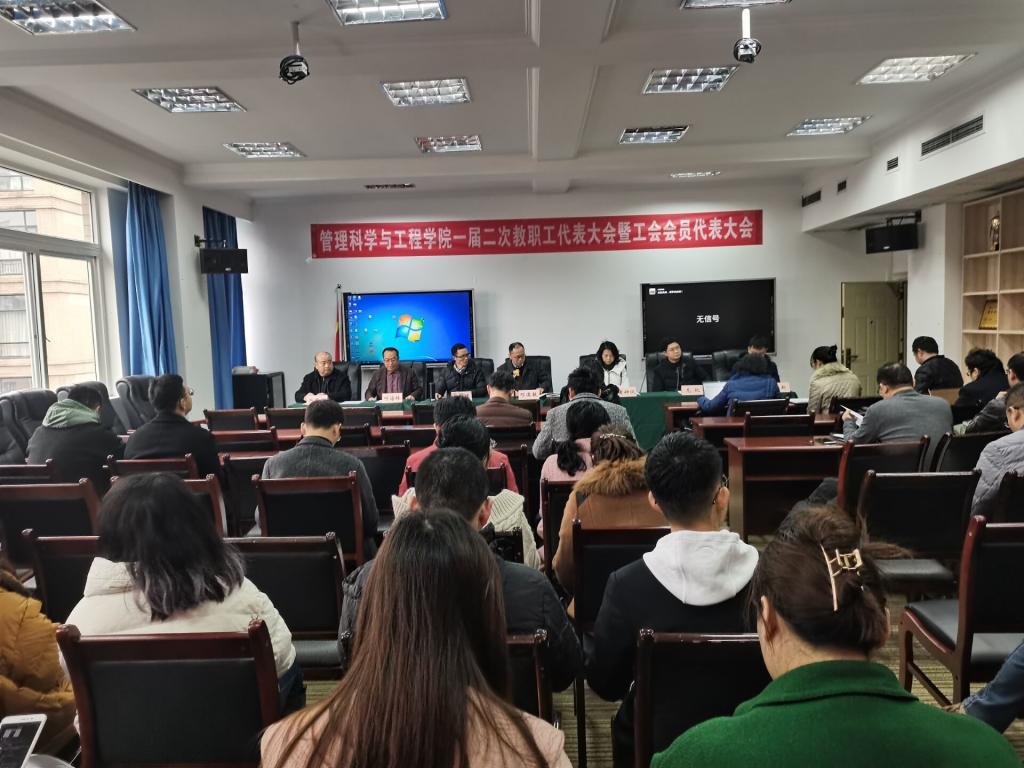 2021年12月24日,333体育第一届教职工代表大会暨工会会员代表大会第二次会议在启智楼80707会议室顺利召开。第一届两代会委员在主席台就座,管工学院全体教职工参加了会议。