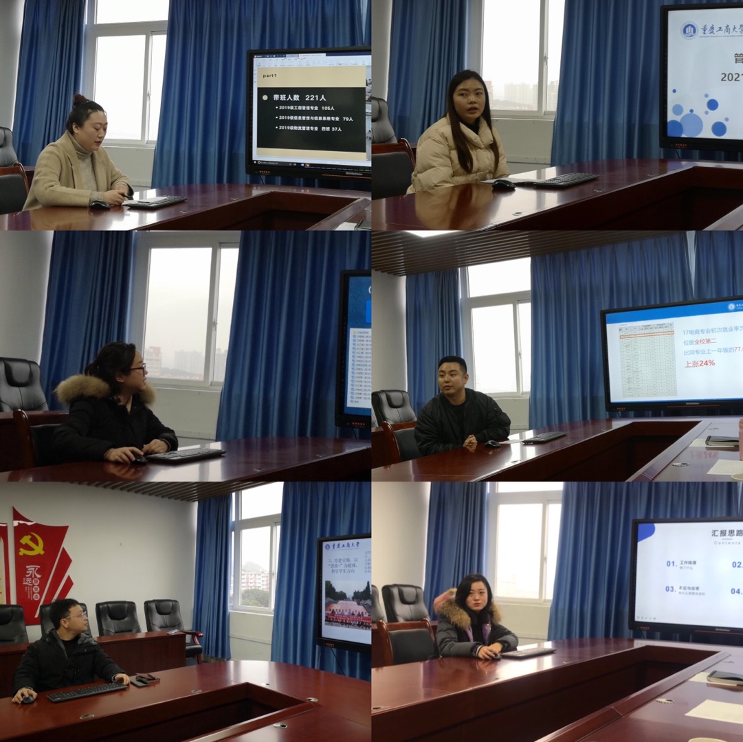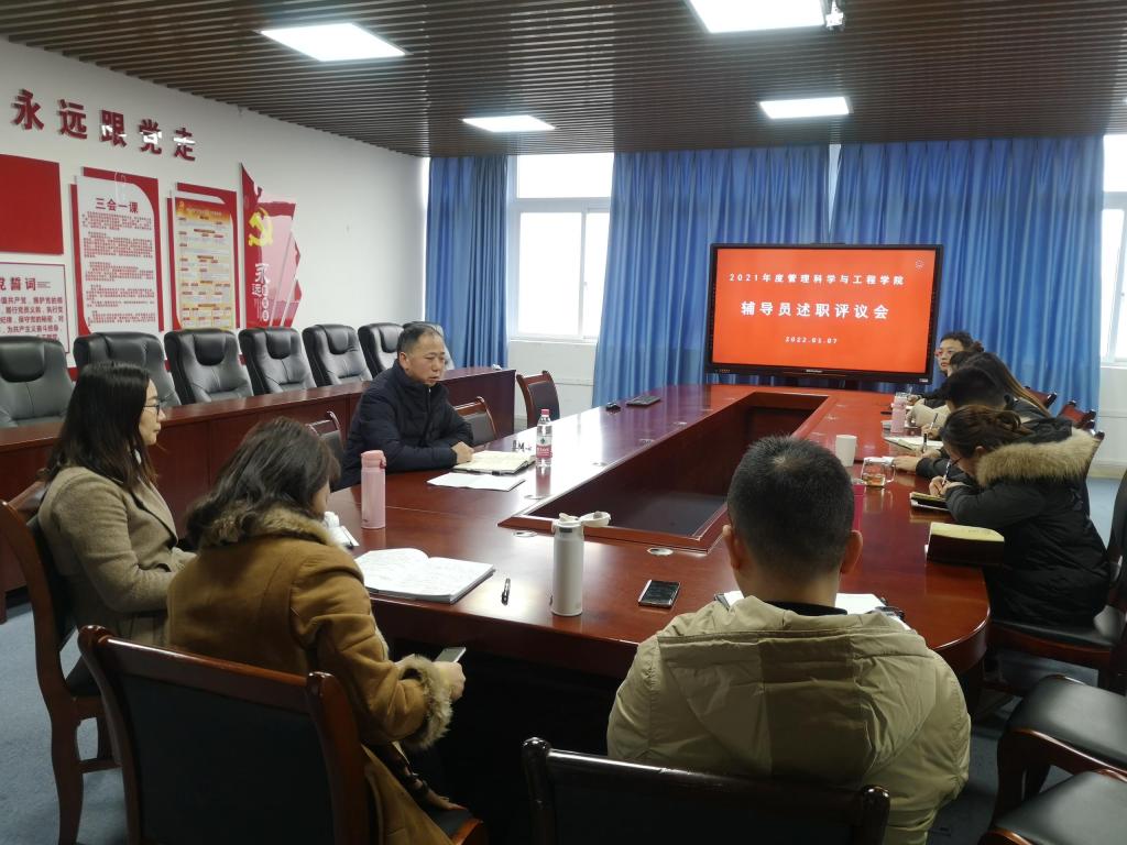1月7日,管理科学与工程公司在启智楼709会议室召开2021年度辅导员述职评议会。公司党政领导班子成员及全体辅导员参加会议。
