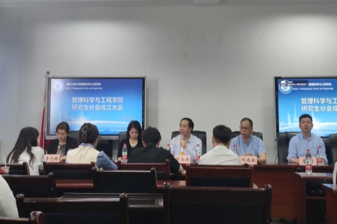 邓龙奎代表研究生院致辞,对管工学院研分会的成立表示热烈祝贺,并提出殷切希望。他希望研分会同学们深入学习习近平总书记的七一重要讲话,牢记青年使命,勇担时代责任,团结青年、凝聚青年,为青年员工成长做出研分会的贡献。