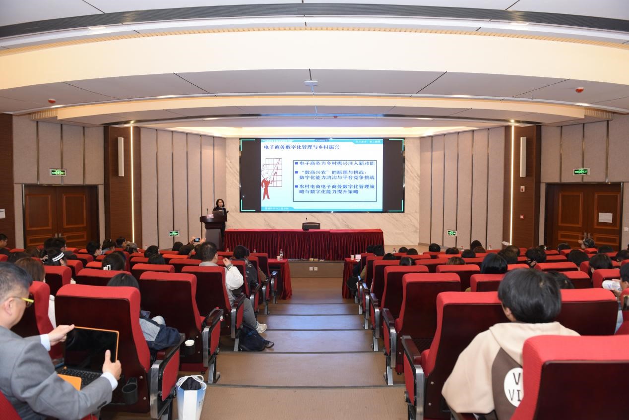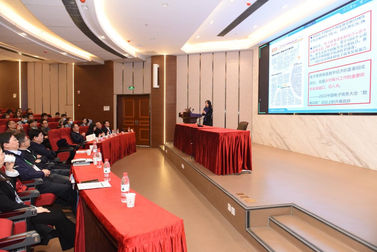 公司经理黄钟仪教授应邀出席论坛并作题为“电子商务数字化管理与乡村振兴”的特邀报告。黄经理首先以2015年以来国家持续出台的支持农村电商发展的政策、头部平台与大平台入局农村电商推动农村振兴的举措、快递行业加快推进农村物流建设的成效、农村网民规模与电商规模的持续快速增长、农村电商新业态新模式的涌现等几个方面的数据获举措,指出“电子商务为乡村振兴注入了新动能”,“数商兴农”工程以数字技术和数据资源推进电子商务进乡村,在促进农村市场转型升级中具有重要作用。随后她话锋一转,指出随着我国乡村基础设施加速数字化、网络化,新时代城乡数字鸿沟问题的主要矛盾,正从基础设施差距转向数字素养差距,即从“接入鸿沟”转向“能力鸿沟”。她分析了城乡之间数字化能力鸿沟的表现、农村电商面临的平台竞争和平台依赖加剧的情况,并借用“随着时间的推移,传统与平台依赖型创业公司的不同风险模型”图指出,乡村电商创业已经跨过初始阶段,进入成长阶段,将更多受到消极平台效应的影响,而城乡数字化能力鸿沟、平台竞争和平台依赖的加剧有可能强化这种消极网络效应,并“数商兴农”工程有效推进的瓶颈与挑战。基于这些挑战,黄经理逐一给出了农村电商电子商务数字化管理策略与数字化能力提升策略建议。随后,黄经理简要介绍了她自己研究团队关于数字平台技术、数据等赋能促进农村电商动态能力的机制模型,学院胡森森副教授团队关于区块链赋能乡村振兴的机制模型,以及学院小云雀电商专业协会在赋能乡村振兴方面的工作。最后,黄钟仪经理提议,所有电商学者要共同努力,及时回应时代呼唤,讲数字电商故事,创乡村电商理论,助推乡村振兴。