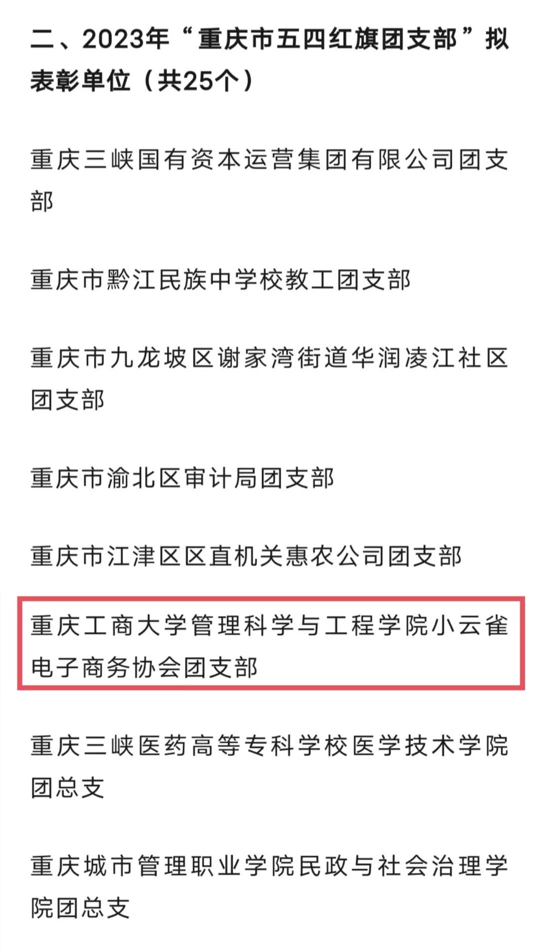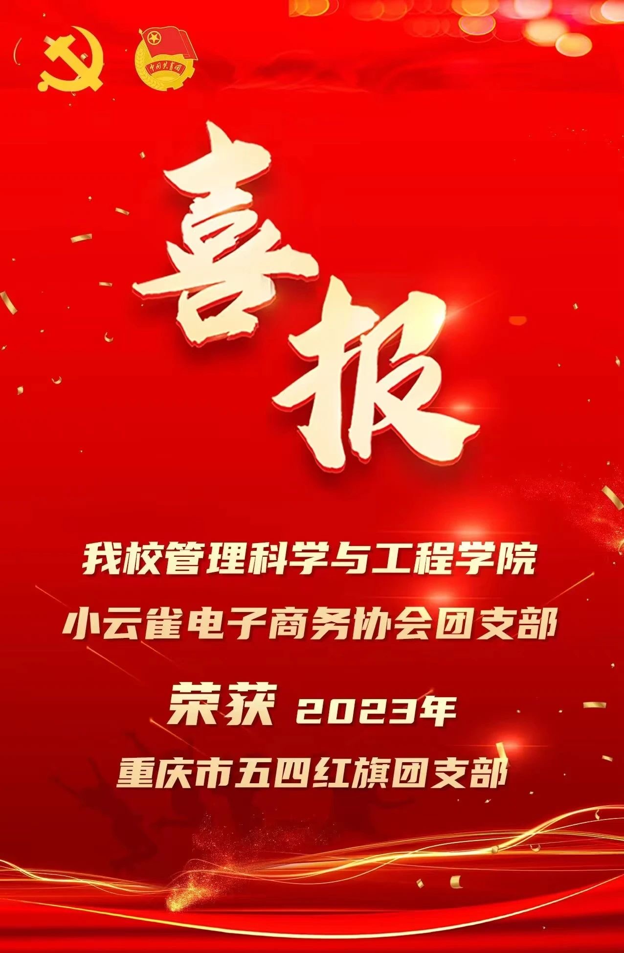 近日《关于评选表彰2023年“重庆青年五四奖章”“重庆市五四红旗团委”“重庆市五四红旗团支部”“重庆市优秀共青团员”“重庆市优秀共青团干部”的通知》公布,公司333体育小云雀电子商务协会团支部被授予“重庆市五四红旗团支部”荣誉称号。