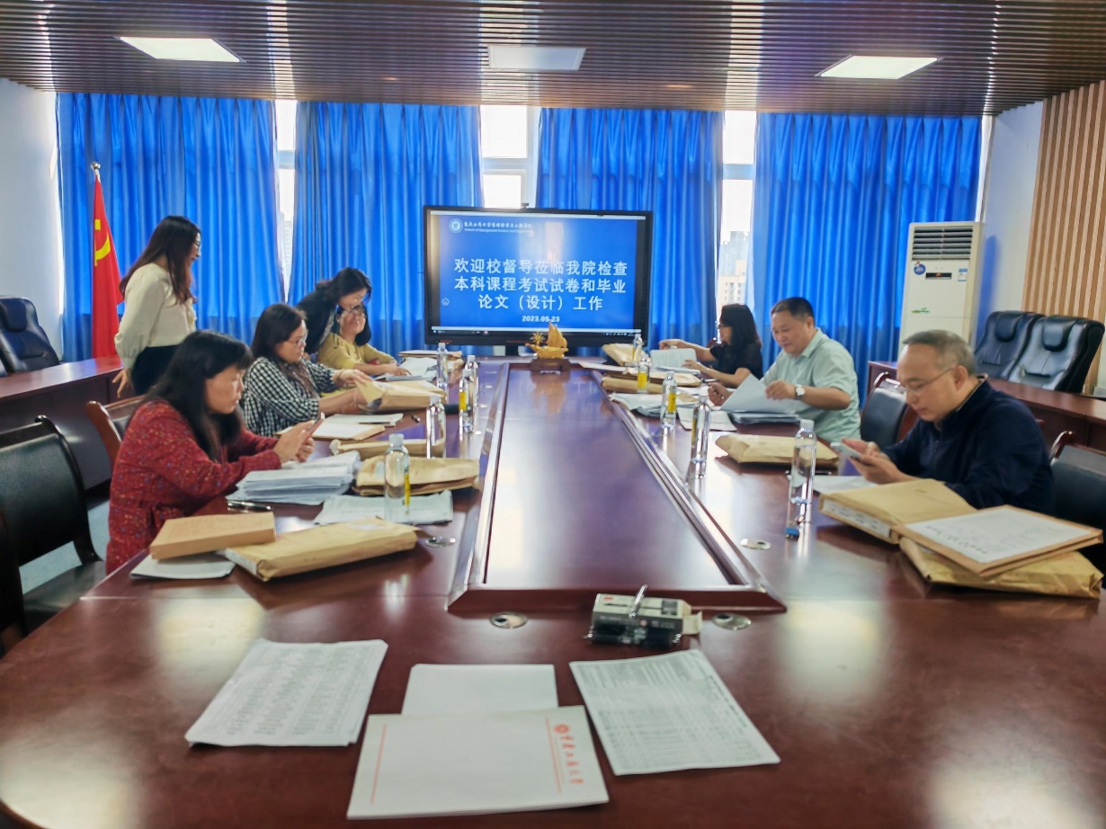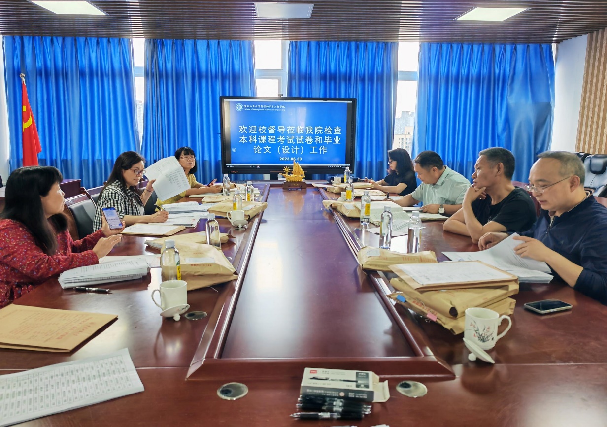 2023年5月23日下午,学校张永智副教授作为组长带领崔飚、杨雁、余伦芳、肖艳、潘龙萍6位校督导到公司开展2022年以来的全院本科课程考试试卷和本科毕业论文(设计)抽查工作。