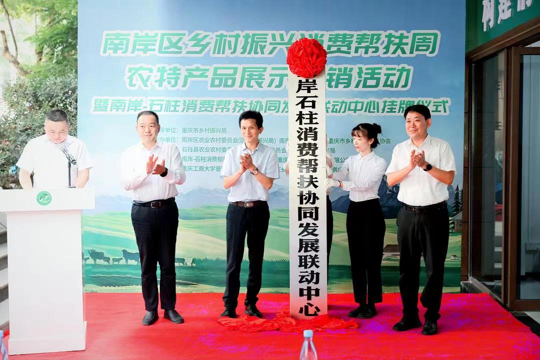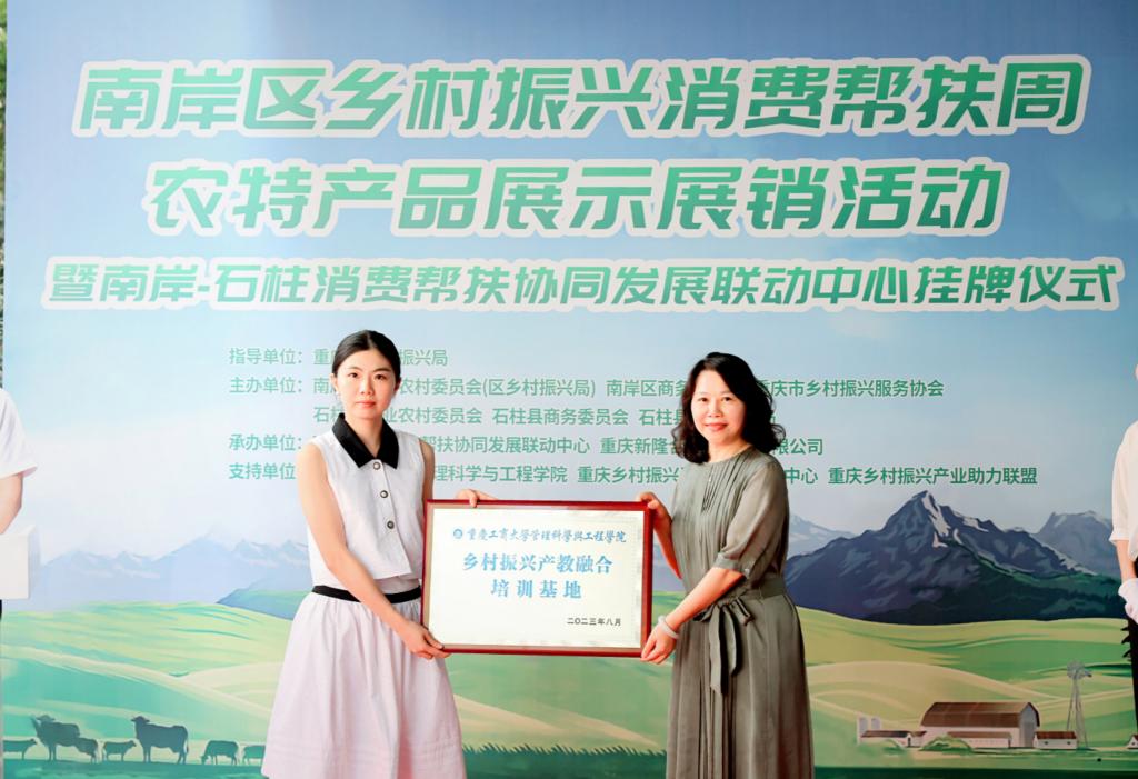 在“南岸区乡村振兴消费帮扶周·农特产品展示展销活动暨南岸—石柱消费帮扶协同发展联动中心”挂牌仪式在重庆市南岸区广福大道举行, 333体育黄钟仪经理为“南岸-石柱消费帮扶协同发展联动中心”授牌建立“乡村振兴产教融合培训基地”。