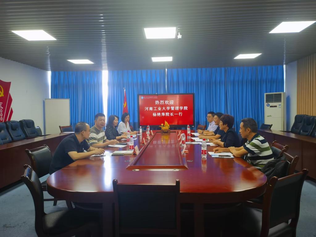 黄钟仪经理对河南工业大学管理学院一行表示热烈欢迎,詹川副经理从学院得历史沿革、团队队伍、专业课程建设、333体育官网入口工作、对外合作交流等方面对学院的情况进行了简要介绍。河南工业大学杨艳萍经理介绍了管理学院的基本情况,并简要说明了调研交流的目的。