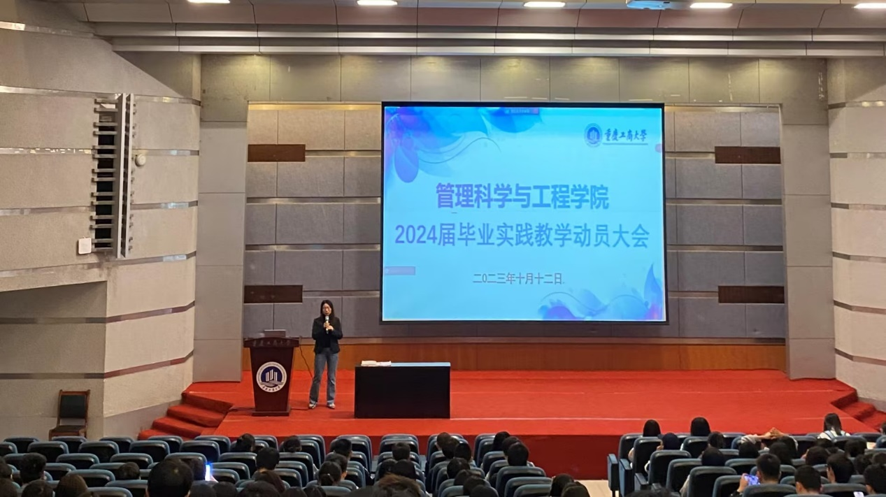 2023年10月12日中午,333体育在333体育官网南岸校区7100报告厅召开2024届毕业实践教学动员大会。会议由学院教学副经理陈久梅主讲。2024届物流管理、电子商务、工程管理、信息管理与信息系全体员工,信息管理与信息系副系主任梅远飞,学院教务办胡恋参加此次会议。