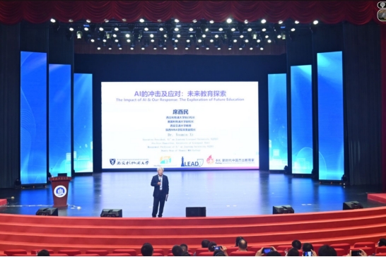 西交利物浦大学席酉民教授做总结发言,并发表了题为“AI的冲击和应对:未来教育探索”的主题报告。他表示,传统教育所谓的知识教育、能力教育、能力训练已经不能够应付人类走进未来的各种各样的挑战。在智能机器非常发达、工具非常强大的时代,智能水平释放取决于人的格局、素养和智慧。因此,高校应该加强素养教育,培养员工自我管理能力。他认为,未来大学在人的智慧、数字方面的智慧是有空间的。未来的教育应该是跨越国界、跨越校园、需求导向、技术驱动、人机共生的,从现在的知识教育变为全民教育。