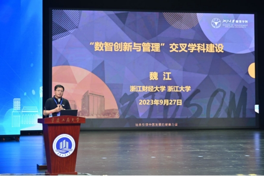 浙江财经大学魏江教授发表了题为“数智创新与管理交叉团队建设”的主题报告。他指出,智能增强时代正在加速到来,人与人之间的关系、人与机器之间的关系等正在被重新界定,这将超越传统管理、工程等学科的边界,亟需新型交叉学科来对新时代的生产力和生产关系新规律进行探索。魏江教授介绍了浙江大学管理学院对“数智创新与管理”交叉学科的建设举措,旨在打破学科壁垒,引领全球数字智能创新和管理研究范式。建议中国商学院应注重将教学内容与本土情境相结合,在教学内容中融入现代科技如人工智能、大数据、万物互联下的组织管理知识,培养员工的分析能力与创造力,在研究中启发新的思考,产出反哺社会的新的理论成果。