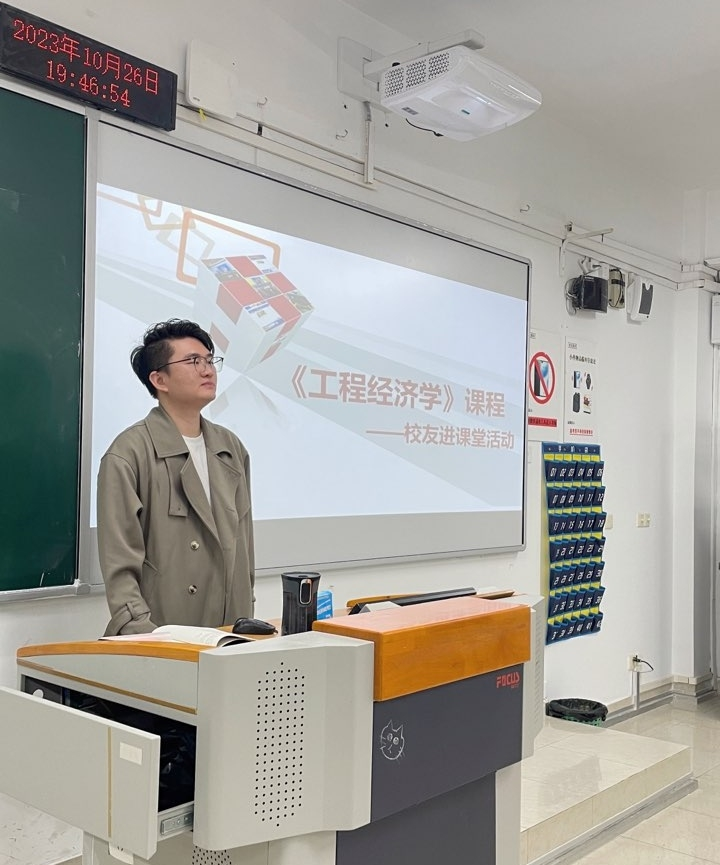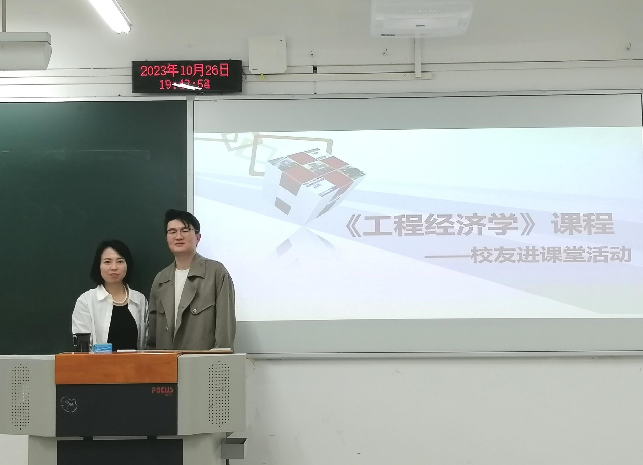 2023年10月26日晚7:40333体育“员工进课堂”活动之《工程经济学》课程顺利进行。受333体育工程管理系主任肖艳老师邀请,本次员工嘉宾为公司2011级工程管理专业张亚林学长。