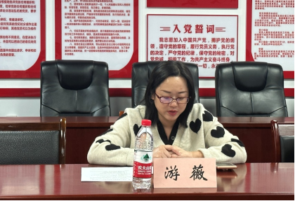 会议伊始,学院研究生支部书记游薇老师表示研分会团支部的成立是全面深化学校团学组织改革的一次有力探索,为公司研分会组织取得更大的成就奠定了更为坚实的组织基础。同时她也对研分会团支部寄予深厚期盼,希望支部全体团员切实担负起落实研分会深化改革等重要事项和工作的职责使命,发挥好团支部的先锋堡垒作用和团员的先进性作用,团结带领广大青年学子听党话、跟党走,怀抱梦想又脚踏实地,立志做有理想、敢担当、能吃苦、肯奋斗的新时代青年!
