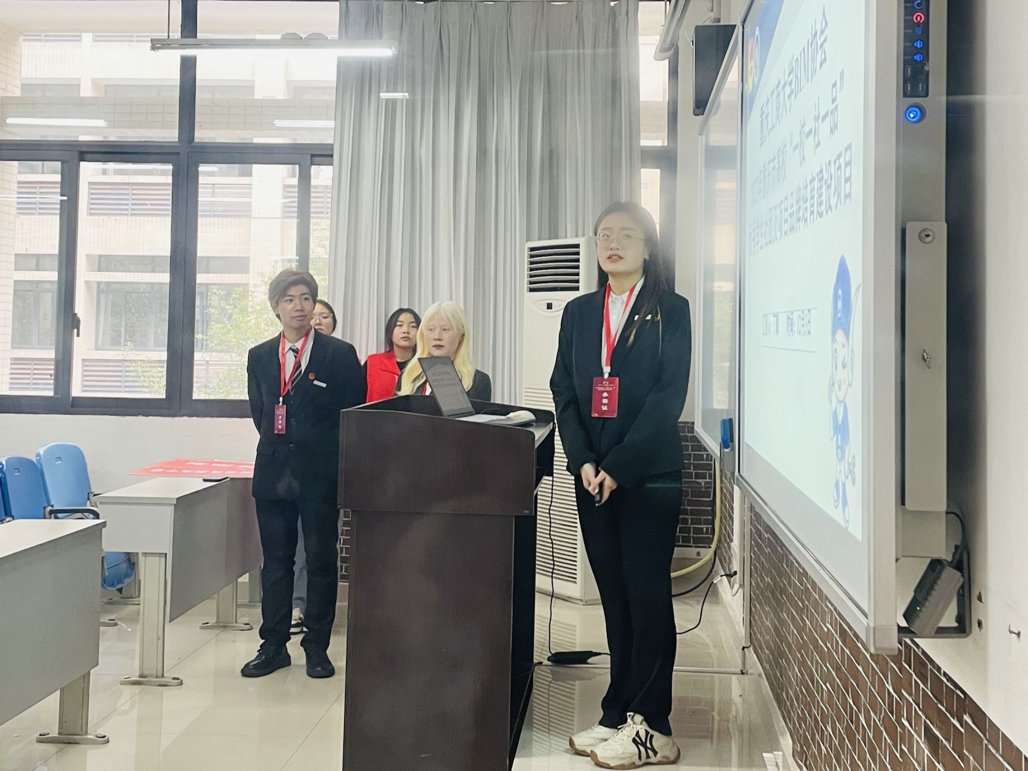 在答辩环节中,协会副会长丁麟担任汇报人清晰地阐述了BIM协会各项特色活动和科研项目,充分展示了协会成熟的管理制度和培养模式,并针对各评委提出的社团建设、未来规划等相关问题详细作答。