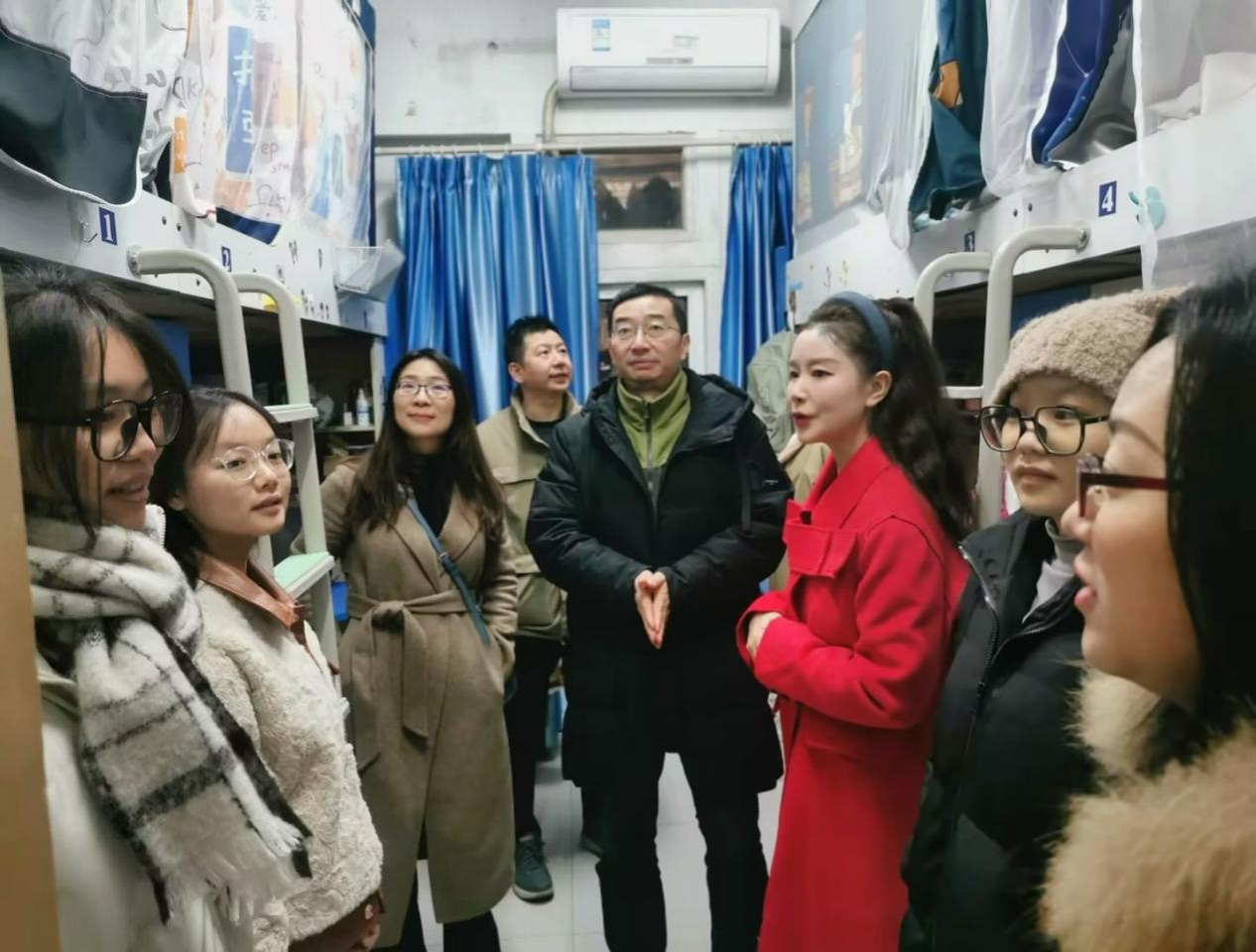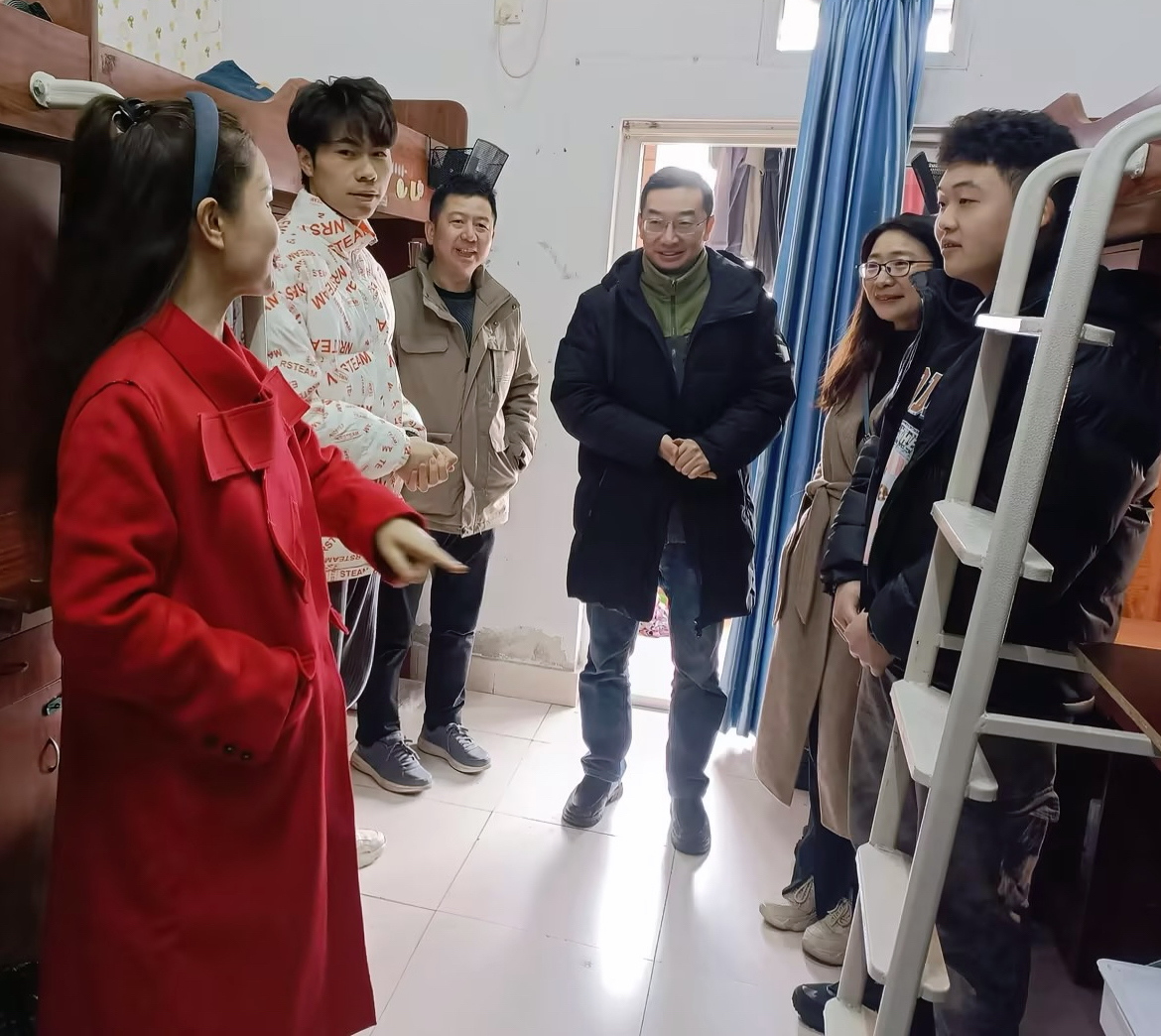在走访过程中,李华平书记详细询问了员工们的学习和生活情况,并鼓励他们如果有困难或问题,可以及时和老师、学院反馈。同时,辅导员们也对员工寝室的安全隐患和卫生情况进行了重点排查,提醒同学们保持寝室干净整洁,营造良好舒适的生活氛围。