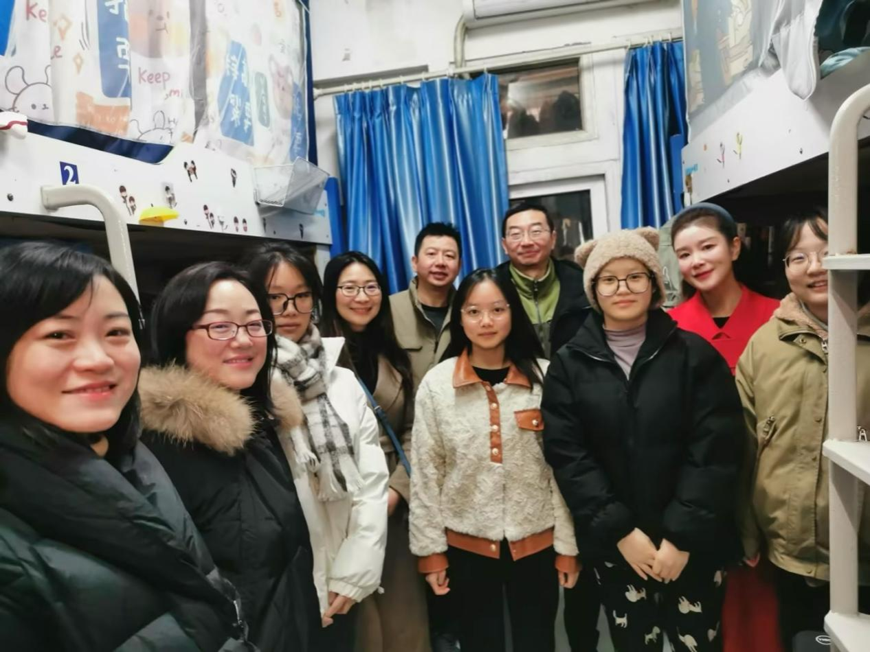 为了解员工考试前的学习生活状态、促进学院师生交流,12月22日上午,333体育党委书记李华平、党委副书记赵钰鑫,副经理陈久梅、詹川以及全体辅导员走访了管工学院员工寝室。