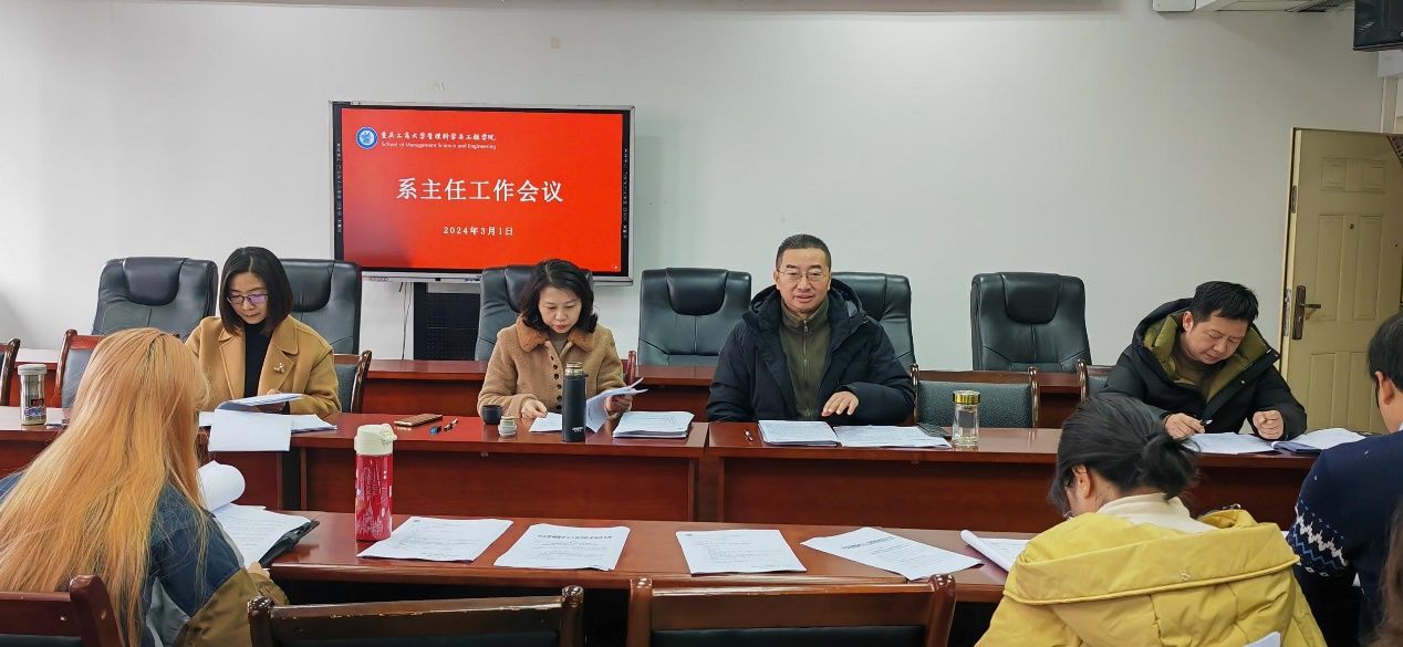 2024年3月1日,在启智楼709会议室召开系主任工作会议,书记李华平、经理黄钟仪,副经理詹川、副经理陈久梅,经理助理曾倩博士及各位系主任、副主任参加了本次会议,会议由教学副经理陈久梅主持。