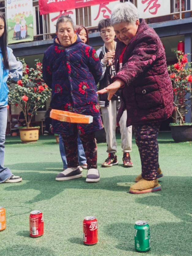 游戏环节,志愿者们拿出精心准备的道具,耐心地陪伴帮助爷爷奶奶们参与到各种各样的游戏当中,一片欢声笑语中,爷爷奶奶们展现了久违的稚气,变成了名副其实的“老小孩”,岁月虽老,可风采依旧。