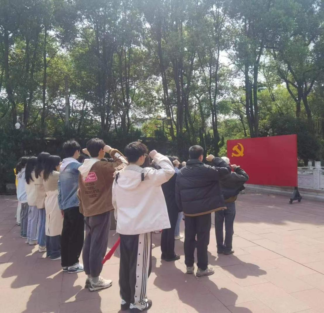 活动伊始,党员们整齐列队,怀着对革命先烈的无限敬仰,来到了庄严肃穆的烈士陵园。在烈士纪念碑前,大家肃立默哀,深切缅怀“11.27大屠杀”遇难烈士。随后,在员工党支部书记温涵老师带领下,全体党员同志一起重温入党誓词,铿锵有力的誓言回荡在陵园上空,彰显了新时代党员的坚定信念和崇高追求。