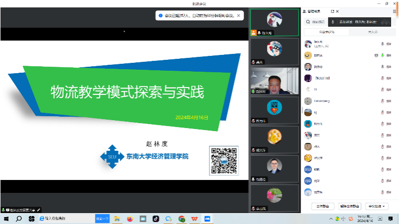为进一步推进公司2024年公司产品改革研究项目申报工作,促进学院专业的内涵建设。2024年4月16日晚上7:00在线举办公司产品改革研究项目申报指导交流会。东南大学首席教授、博士生导师赵林度教授,学院副经理陈久梅、学院教师、重庆市交通与物流教指委部分委员等40余人参与了此次交流会。会议由副经理陈久梅主持。