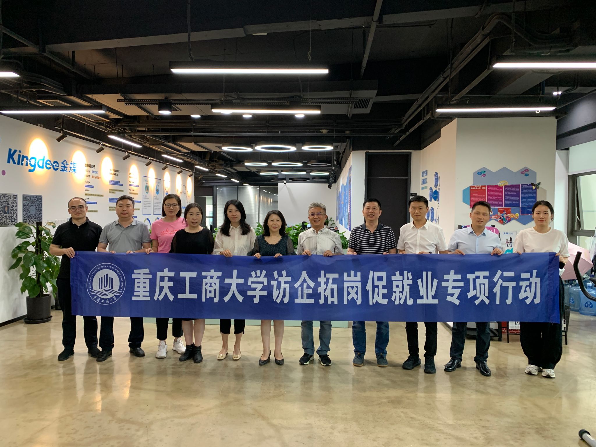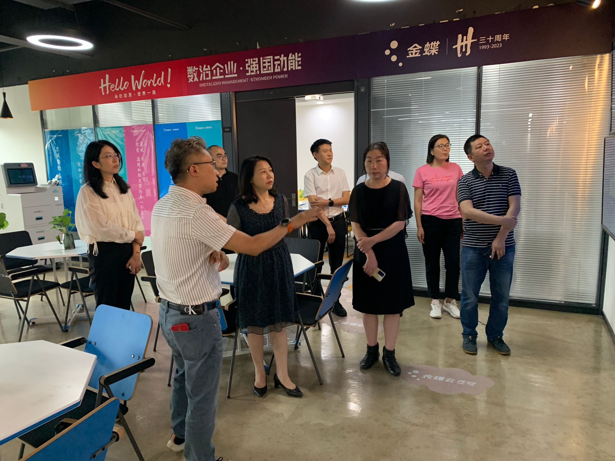 5月28日下午,学院黄钟仪经理带队赴金蝶软件重庆分公司开展“访企拓岗”专项行动,并与金蝶软件重庆分公司总经理张颖、总经理助理王华、开发总监游超、人力资源总监武宁、招聘负责人罗毅等进行了交流座谈。双方就员工实习就业、人才培养、校企合作、专业建设等方面进行了深入交流。学院副经理詹川、信息管理与大数据应用系系主任邢文婷、系副主任郑淞尹、重庆市发展信息管理工程技术研究中心主任代春艳、学院学科办主任白云一同参与了本次调研。