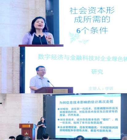 学术报告环节由公司经理黄钟仪教授主持。西南大学的李晓阳教授分享了如何利用社会资本壮大农业企业的经验;四川外国语大学的李训教授探讨了数字经济与金融科技对企业绿色转型的影响;公司经理黄钟仪教授做了《发展数字经济值得关注的四个问题》的主题报告,从索洛悖论、平台依赖、消极网络效应、数字鸿沟四个方面进行了问题讨论。