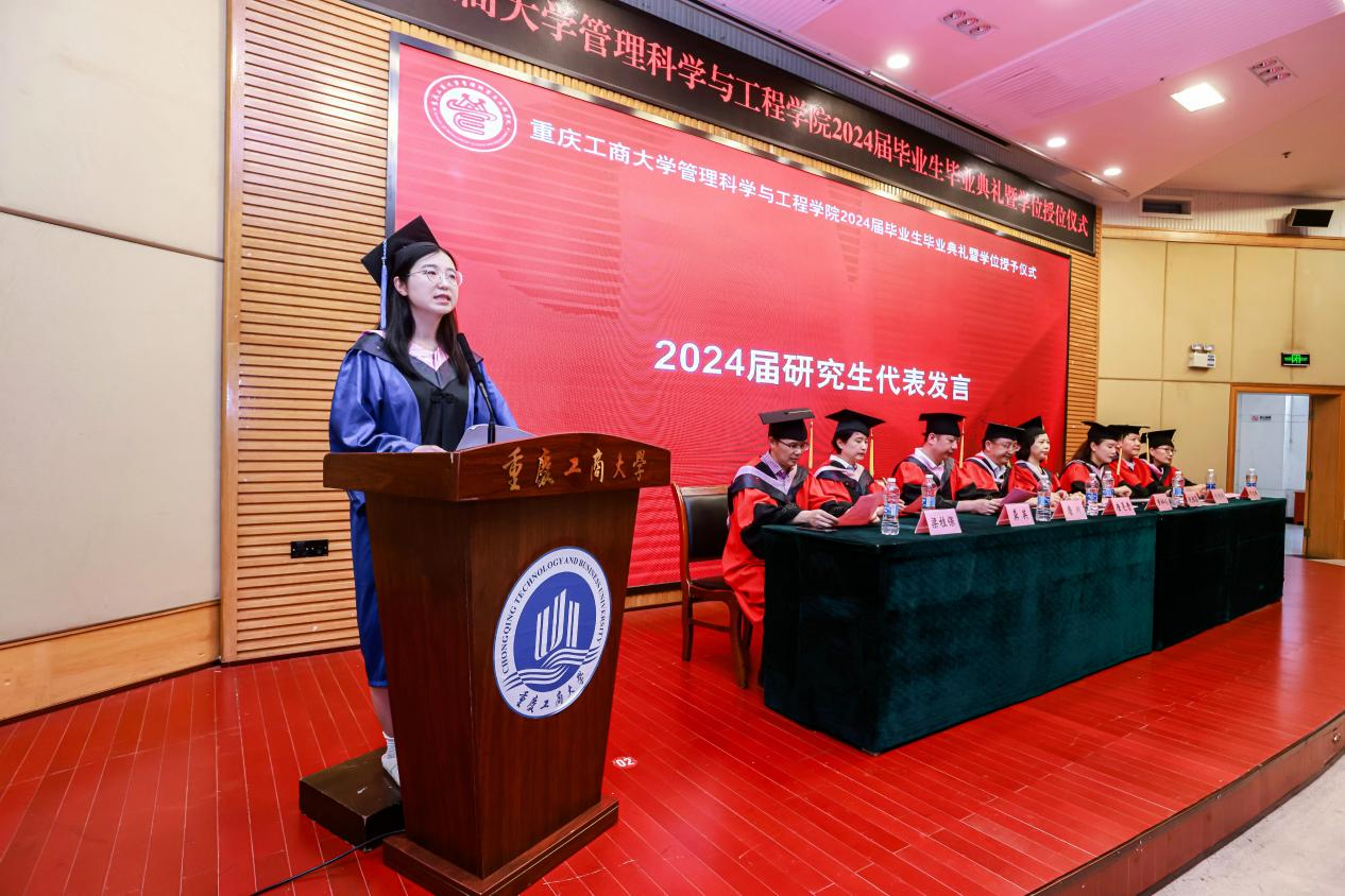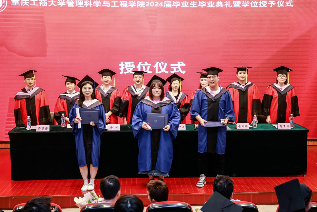 典礼现场隆重热烈,公司党委书记唐亮贵、经理黄钟仪,副书记赵钰鑫、副经理詹川,工程管理系、物流管理系、电子商务系、信息管理与信息系统系主任及教师代表出席,员工代表、家长代表、及2024届全体毕业生齐聚一堂,共同见毕业生人生成长过程中重要的一刻。本次毕业生毕业典礼暨学位授位仪式由赵钰鑫副书记主持。