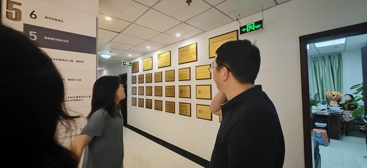 随后,在韩经理的带领下参观了西南政法大学商学院和民商法学院的文化墙总体布局及各板块安排,内容不仅包含了学校的历史沿革、办学理念,还融入了师生风采、教学成果等元素。