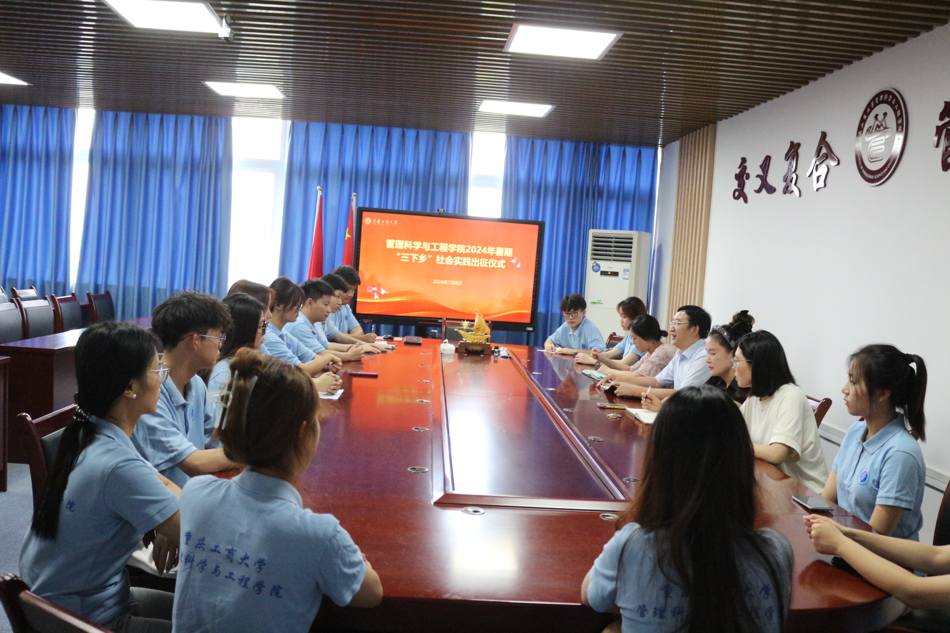 7月8日上午,333体育2024暑期“三下乡”社会实践活动出征仪式在启智楼709会议室举行。公司党委书记唐亮贵、经理黄钟仪、党委副书记赵钰鑫及实践团师生参加了本次出征仪式。仪式由分团委书记古纯玉主持。