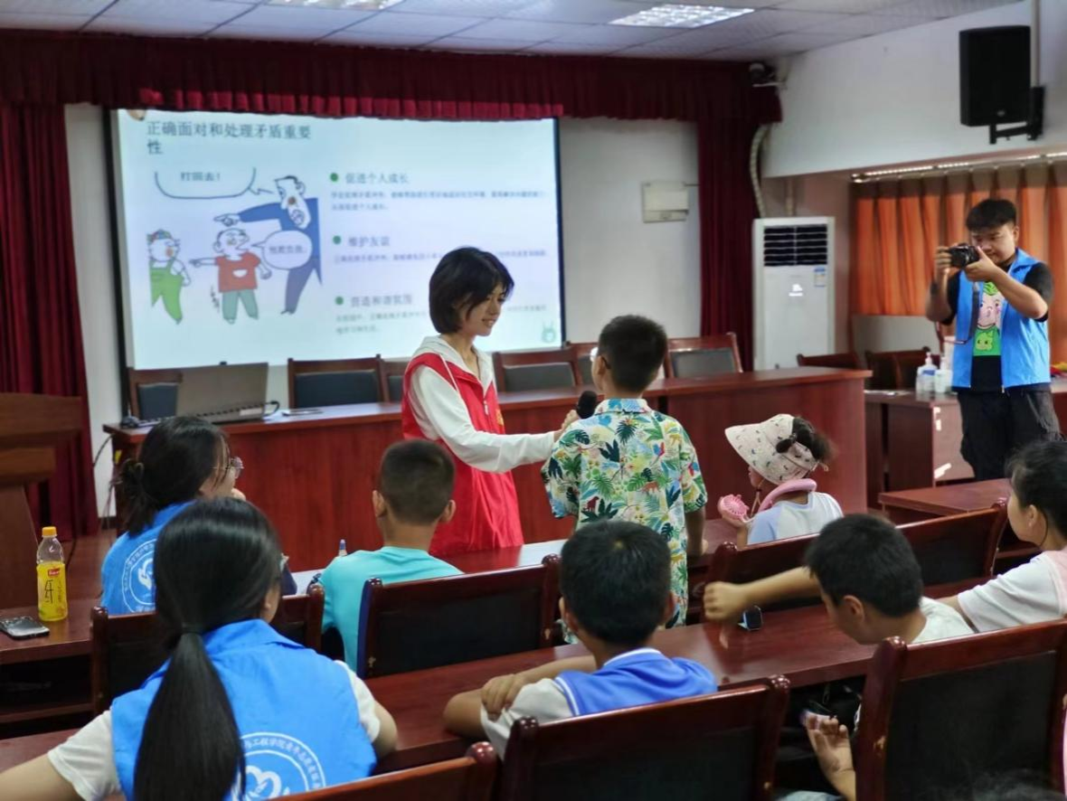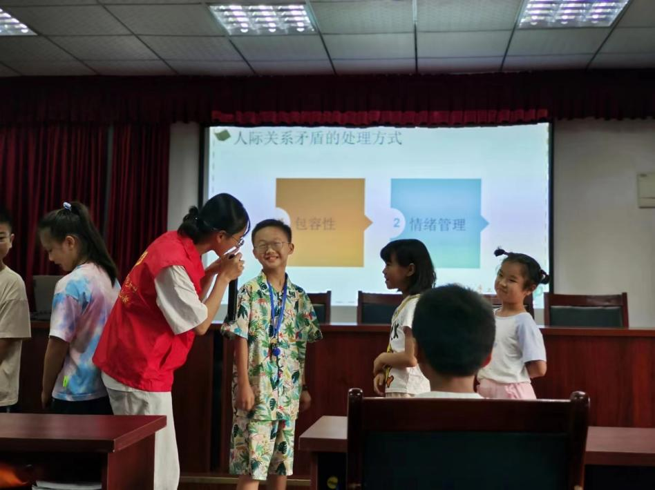 活动伊始,志愿者们通过播放生动有趣的动画短片,孩子们身临其境地感受日常生活状态,了解基本的生活常识,为未来的生活做好铺垫。接着,志愿者们通过讲解PPT的形式,小孩子们明白了人际关系的重要性,如何建立和维护良好的人际关系,以及在遇到人际冲突时的应对策略。在课堂互动环节,志愿者们通过有动问答的形式,教孩子们如何与他人交朋友,鼓励他们主动与他人打招呼,引导小朋友们用恰当的方法处理与他人的冲突。