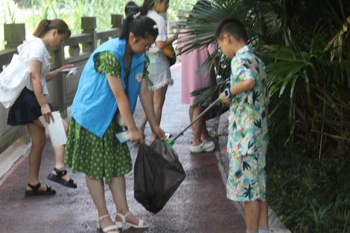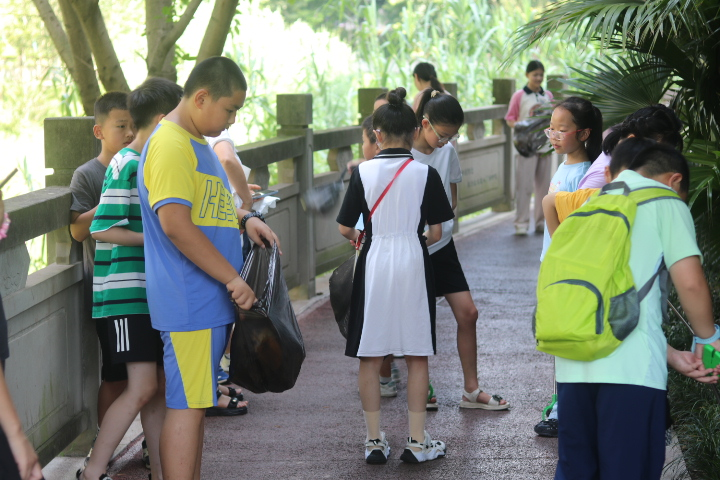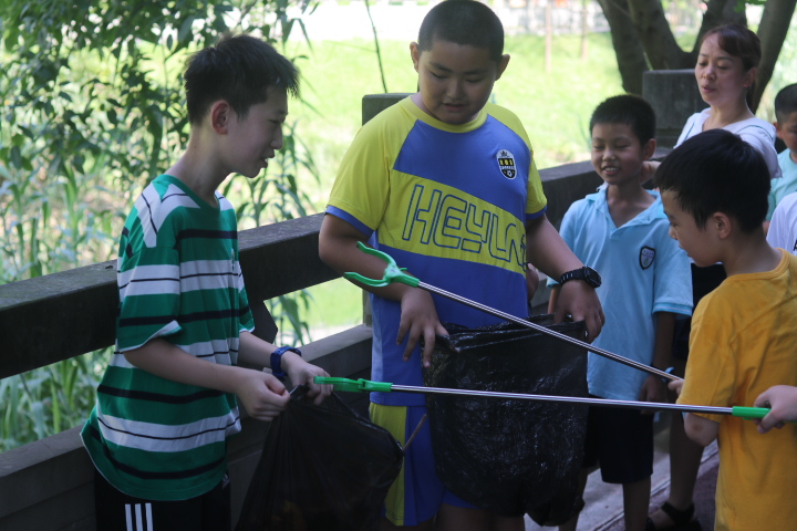 活动伊始,志愿者们用绘声的讲解与视频相结合的方式,为孩子们介绍了活动的主要安排与安全注意事项,并划分好小组,引导小朋友们排好队到社区河道现场。在垃圾清理过程中,小朋友们个个都充满了干劲,他们弯着腰、拿着工具,认真地清理起河道边、草丛旁、花坛里的纸屑、烟头、塑料瓶、易拉罐等垃圾杂物。即使天气炎热,汗珠在他们身上流淌,他们稚嫩的脸庞上仍然洋溢着热情的笑容,从未曾埋怨一句。活动结束后,有小朋友买来雪糕犒劳自己,小朋友称此刻真正感受到了劳动带来的快乐。最后小朋友们和志愿者围成一圈,讨论着以后如何践行环境保护行为,并为环境保护的策略提出自己的建议与意见。