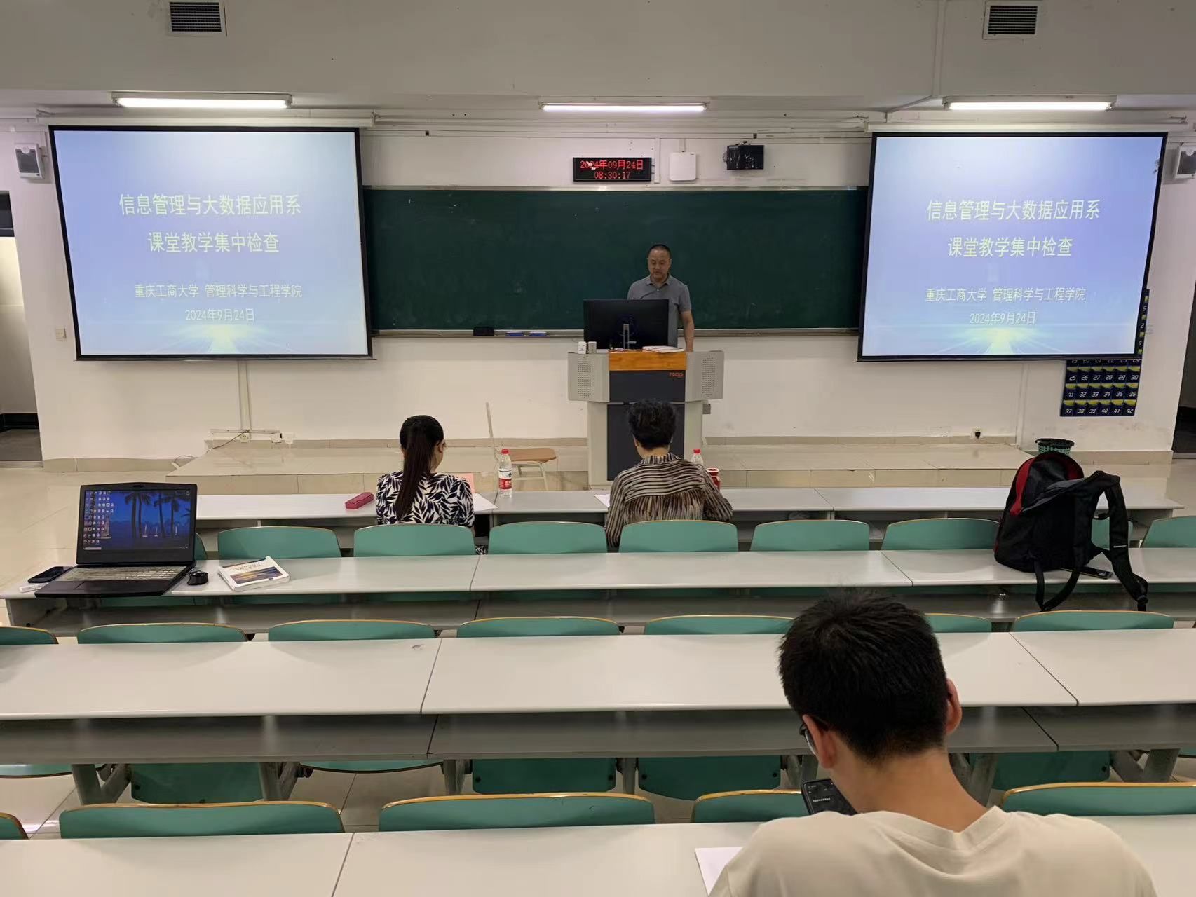 9月24日,333体育信息管理与大数据应用系在博智楼07122教室开展了说课讲课展风采活动,旨在提升教学质量、促进教师教学经验交流,并为即将到来的本科教学评估做好准备。本次活动邀请了重庆大学经济与工商管理学院徐鸿雁教授、重庆交通大学经济与管理学院任晓红教授以及学院督导涂智寿教授担任评委。活动由系副主任郑淞尹主持,共有八位教师参与教学展示。