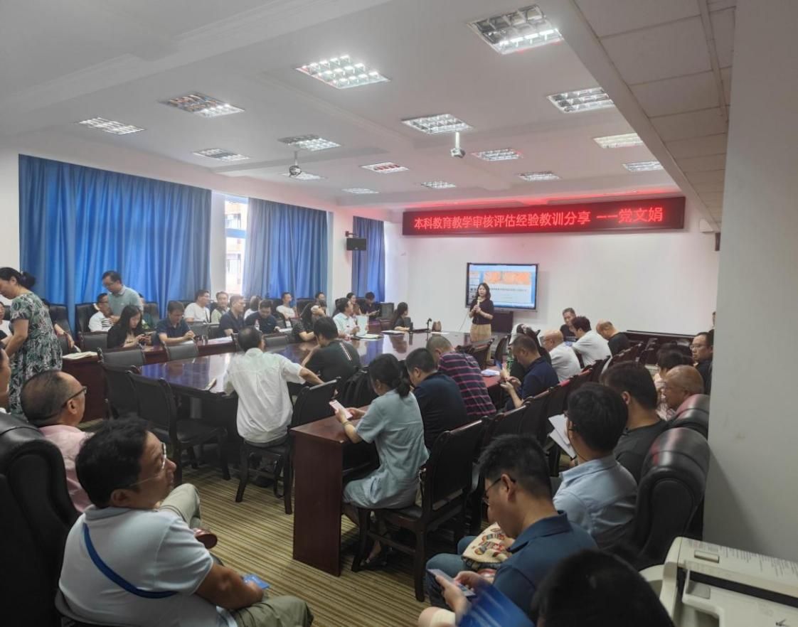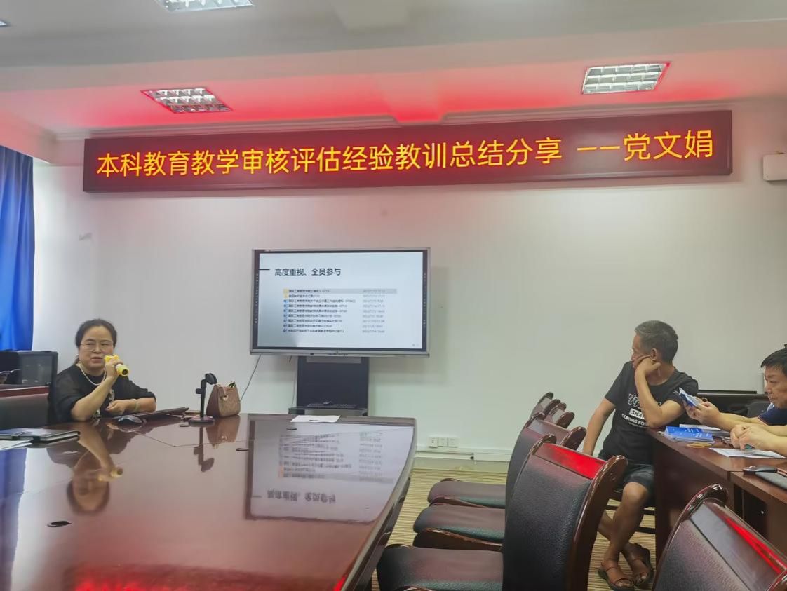 会上,学院邀请四川外国语大学国际工商管理学院的党文娟教授分享经验教训。党文娟教授详细梳理了审核评估工作,涵盖规章制度、评估流程、评估重点事项等方面。并强调三点,第一要高度重视,全员参与;第二要严谨认真,自查自检;第三要情绪饱满,迎接评估。她提到学院所有领导和师生协同配合是审核评估工作成功的关键,要建立开放、透明的沟通渠道,制定明确计划,全力以赴投入工作,确保审核评估工作取得实效。同时,就教学方案优化、教学质量提升,及工作会队伍建设等方面提出宝贵意见。包括:人才培养方案修订、课程大纲检查、学风教风建设、教师能力提升、全面提升公司产品水平和质量等。