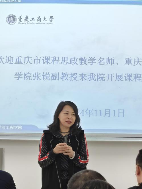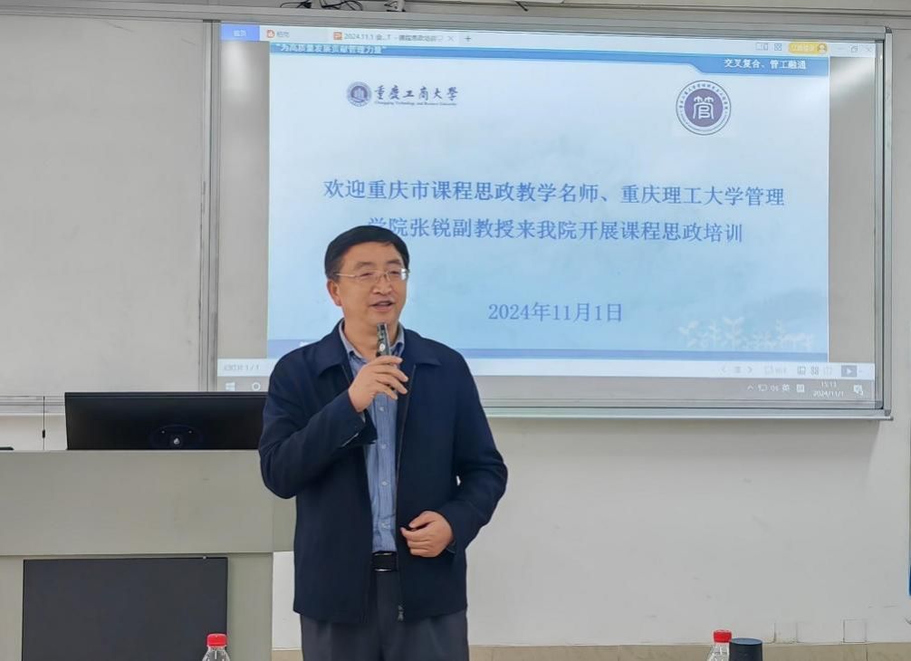 2024年11月1日下午,学院邀请重庆市课程思政教学名师,重庆理工大学管理学院张锐副教授,硕士研究生导师,北京大学艺术学院访问学者来院分享“课程思政”。此次培训旨在通过理论讲解与实践分享,帮助教师更好地理解课程思政的内涵与要求,提升教学质量与效果。学院领导班子、系主任及全体任课教师参会。培训会议由梁桂保副经理主持。