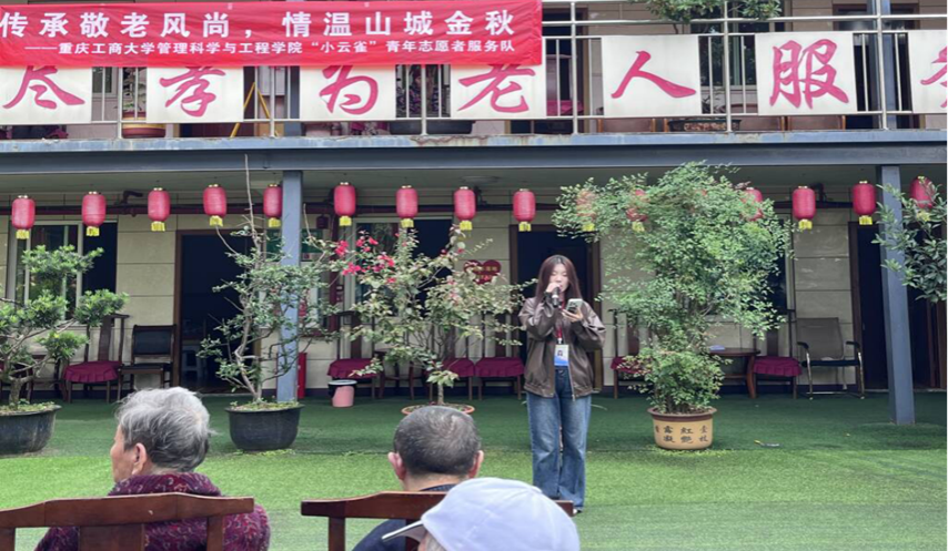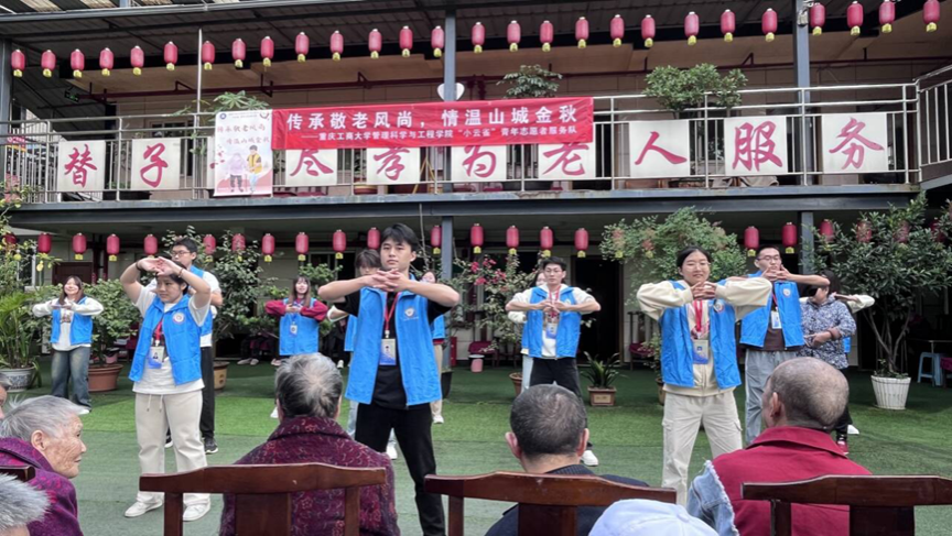 活动伊始,志愿者们通过在舞台上表演合唱歌曲《明天会更好》为老人们带来欢乐,陪伴老年人,倾听他们的过往事迹,接着的手势舞《你笑起来真好看》、舞蹈《在小小的花园里面挖呀挖呀挖》以及歌曲《外婆的澎湖湾》从视觉听觉两方面为老人们带来愉悦的心情。同时也调动了志愿者们的服务热情,现场充满着美好与温馨。