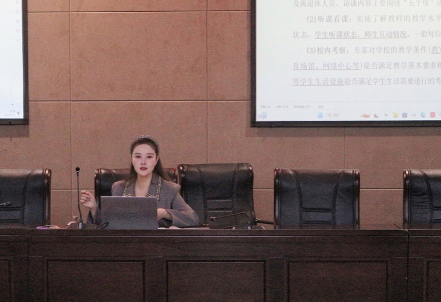 在会上,赵书记围绕本科公司产品审核评估(以下简称“审核评估”)的基本知识、学校概况以及员工注意事项等方面进行了详实的培训。赵书记强调了审核评估工作的重要性,她指出,本科公司产品审核评估的核心在于立德树人,突出本科教育的中心地位,以全面提高人才培养质量为宗旨;此次审核评估分为线上评估与专家进校评估两个阶段,专家将采用访谈座谈、听课看课及校内考察等多种方法,对公司各项工作进行全面评估,并要求员工在课堂上端正学习态度,认真听课,抵制与课堂无关的行为。