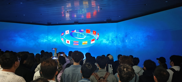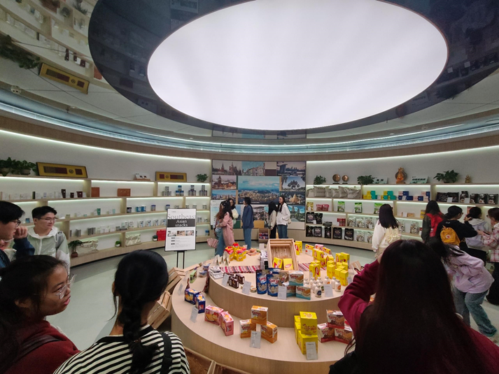 上午9点,师生一行首先抵达江津综合保税区。在这里,讲解员详细介绍了重庆枢纽港产业园国际物流枢纽规划的最新进展,并播放了一系列相关视频,帮助员工们直观地了解保税区的功能布局及其在全球供应链中的重要地位。随后,大家参观了保税区内展示的多种进口商品,从电子产品到汽车配件,琳琅满目的展品让员工们深切感受到了国际贸易的繁荣景象。