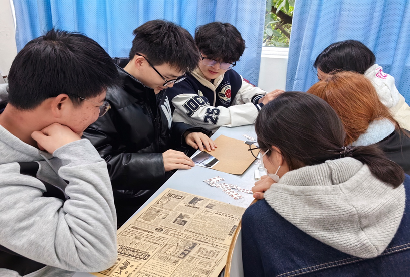 活动现场,主持人介绍了活动目的和流程。同学们观看视频,回顾党的光辉历程以及新时代伟大成就,随后各小组根据活动主题,在30分钟内利用现场提供的拼贴诗材料进行诗词创作,在创作中结构文字,重组诗意,表达情感。