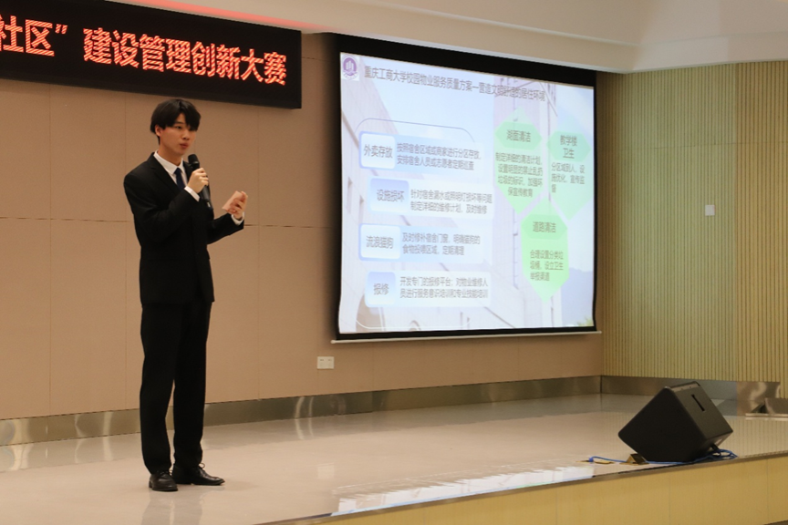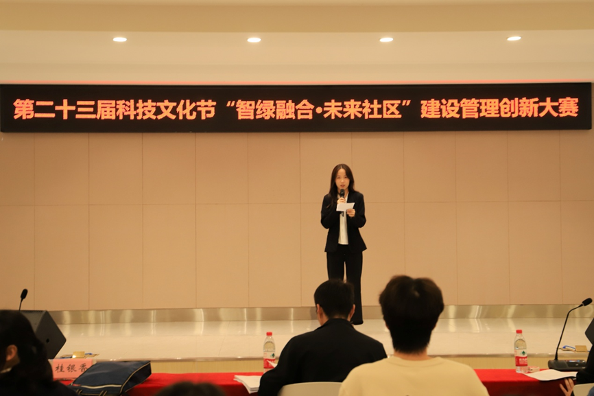为深入学习宣传贯彻党的二十大精神,推动老员工将理论知识转化为实践能力,为未来社区建设提供创新方案,促进智慧社区与绿色低碳理念的融合,4月25日下午,由校团委主办,BIM协会、物流与供应链先锋协会承办的公司第二十三届“筑梦启航”老员工科技文化节之智绿融合·未来社区建设管理创新大赛在南岸校区员工发展中心b101报告厅举办。本次大赛邀请公司公共管理学院副经理王长征,工商管理系副系主任张煜,工程管理系讲师桂银香担任评委,近百余名同学来到现场观摩比赛。