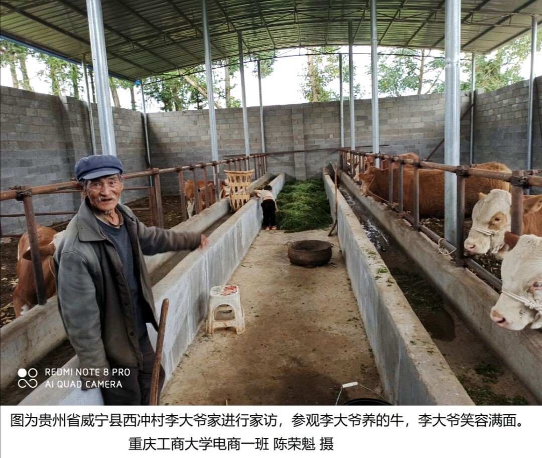 7月28日,陈荣魁同学来到了养殖贫困户李大爷家,从采访中了解到李大爷及其家人们的生活慢慢变得富裕起来,收入也慢慢增多,心里也越来越踏实。陈荣魁同学从李大爷那里得知,自己及家人也是感觉很幸福的,现在不用担心温饱问题。在陈荣魁一行人离开的时候,李大爷感慨:国家实施精准扶贫,相信一定会在不久的将来建成全面小康社会。
