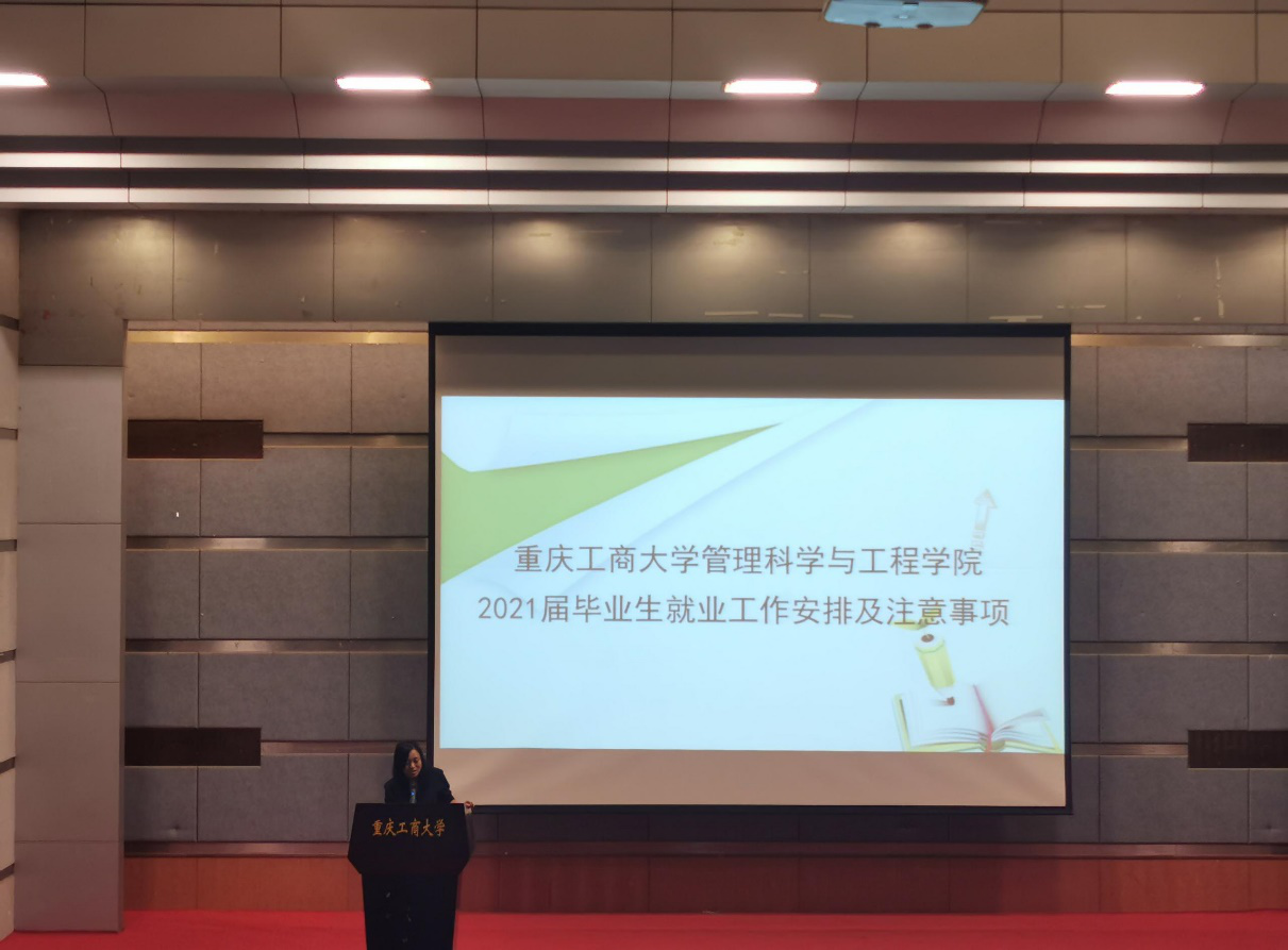 会议伊始,邓德敏书记强调了疫情防控常态化下应届毕业生的就业前景是艰难的,接着他强调2021届毕业生进入毕业年级,需要达到两个目标。第一,要把未完成的学业抓紧时间完成,保证顺利毕业。第二,就是要实现顺利就业的目标。接着他阐述了召开本次动员大会的实质性目的:所谓‘动员’,就是让大家一定要振作起来,一是思想认识要到位,二是及时关注校内外的就业信息。除此之外,他还鼓励同学们,尽管就业压力大,但还是希望同学们不要因此影响心态。他还提醒大家一定要有危机意识,积极参加招聘会,准备好求职材料抢抓每一次就业机会。希望同学们在面对危机时,能够不慌不乱,抓住每一次机遇。就业过程中,要做好遇到挫折的准备,要越挫越勇。接着他叮嘱大家,无论参加校内还是校外招聘,都要遵守常态化下的疫情管理。最后他预祝同学们能够顺利就业,成功考研。
