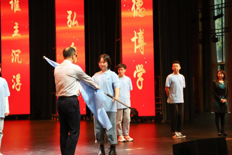 公司成立,凝聚共识,凝练管工文化。在师生代表寄语之后,会议进行了授院服和授院旗仪式。公司党委邓德敏书记和黄钟仪经理为高傲怡、杨金汇等各专业、年级的优秀员工代表授学院院服。在“胜利”的背景音乐中,首届学院分团委员工副书记高傲怡代表全体员工接受了邓书记授予的学院院旗。全体师生相亲相爱一家人与学院共荣辱、共进退。