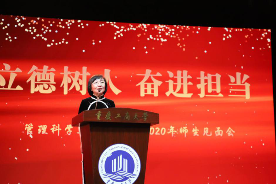 大会在中午12点50全体师生肃然起立,高唱中华人民共和国国歌中正式开始。学院经理黄钟仪教授首先致辞。她指出,第五轮学科评估在即,学院在顺应新时代人才培养大趋势中,由原来分属不同学院的4个专业和5个科研平台融合成立。今天,师生共聚一堂,一方面共庆学院成立,更重要的一方面则是坚持立德树人,师生协力奋进共担当。同时,她希望,一是能够师生齐心将学院建设成为具有完善的现代治理体系和能力的、凝聚工商大学经管特色的一流学院,为国家培育具有新时代担当的人才;二是希望教师既能够做出有高度、深度的学术研究,也愿意俯下身来关心同辈、关怀员工,做一个有人性光辉、有温度的教学者;三是希望同学们能够在追求真知、实现自我的过程中沐浴理性之光,在勇于担当中磨练心气、发现自我、发展自我,真正成为中国特色社会主义事业接班人和建设者。