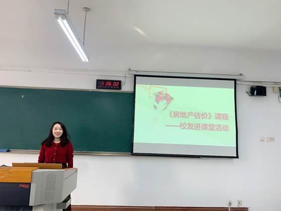 为进一步深化教学改革,加强校企合作和交流,11月19日上午,2012级工程管理优秀员工蒋代平走进工程管理系肖艳老师的《房地产估价》课程,与18级工程管理1、2班同学共话房地产估价行业的发展。