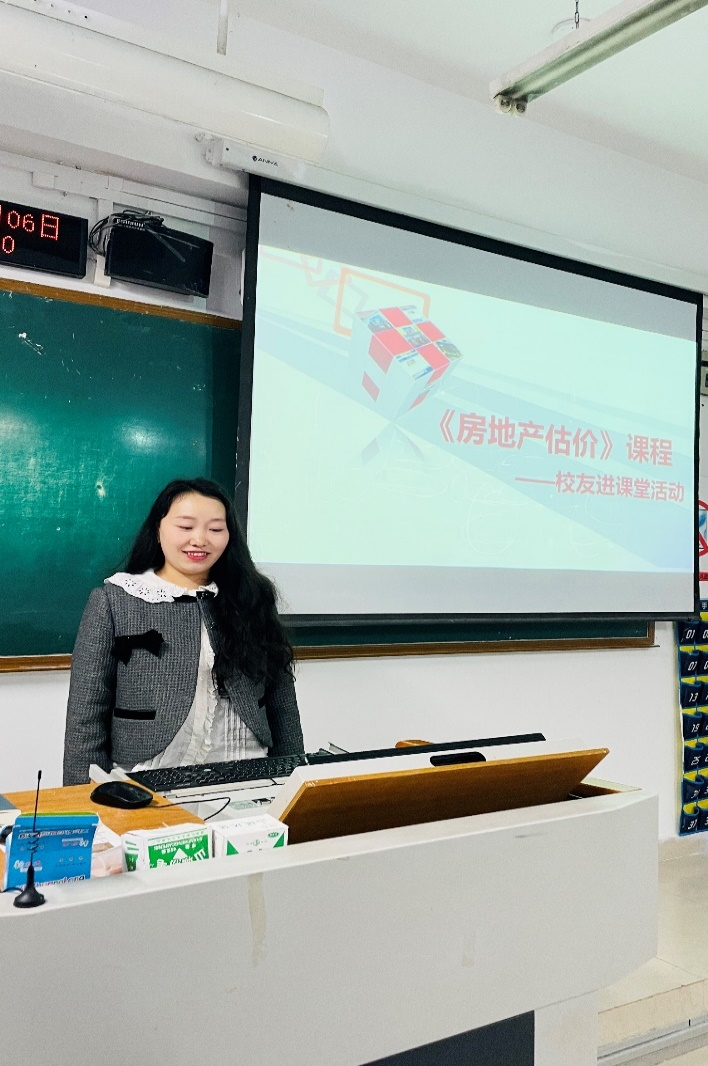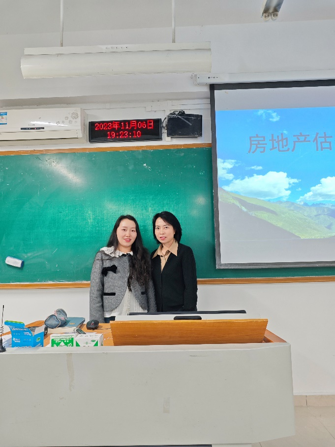 活动开始,蒋代平员工首先感谢了肖艳老师与梁桂保老师的邀请,并对自己及公司的基本情况进行了介绍。随后,她向同学们讲述了房地产估价的含义、要素、必要性以及对房地产估价的基本认识,强调“房地产估价是科学与艺术的有机结合”。