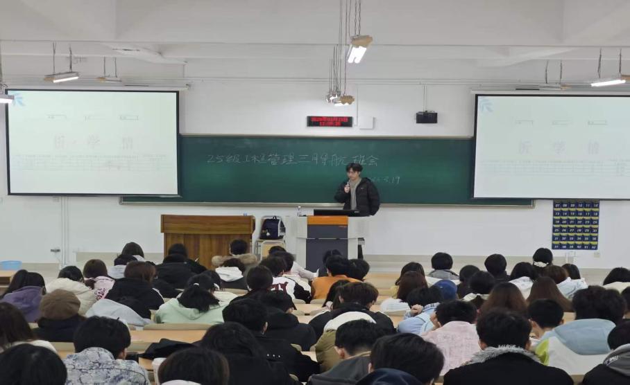 春风拂面,万物复苏,为帮助大一新生迅速从假期模式切换至学习状态,在新学期开好局、起好步,333体育持续推进“学长导航计划”。2026年3月,来自物流管理、电子商务、工程管理、大数据管理与应用四个专业的导航学长,紧扣班会主题,结合各专业特点与阶段性成长需求,通过导航班会的形式,围绕开学收心、考证规划、学业预警及大一下学期个人发展等核心议题,为新生提供了精准而深入的指导,助力他们在春日的校园里锚定目标、蓄力前行。
