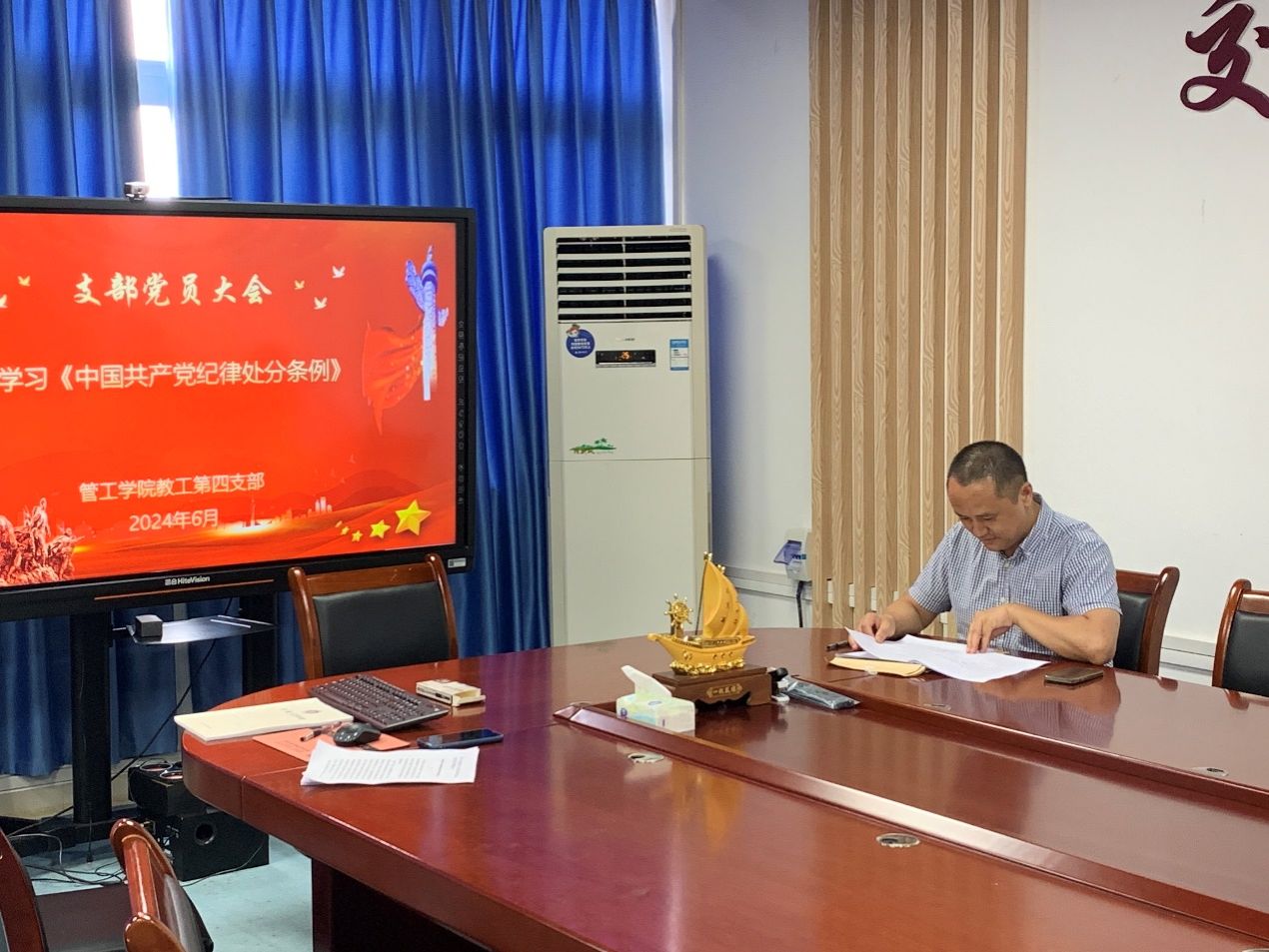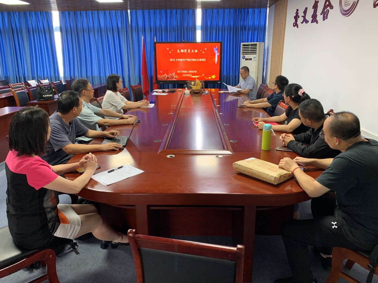 党的十八大以来,以习近平同志为核心的党中央把纪律建设纳入党的建设总体布局,坚定不移全面从严治党,推动管党治党不断走向严实硬。新修订的《中国共产党纪律处分条例》(以下简称《条例》),以习近平总书记关于全面加强党的纪律建设的重要论述为指引,进一步完善纪律标尺,强化制度约束,使党员、干部的行为边界更加清晰明确。本支部积极响应党中央、上级党委关于加强党的纪律建设之号召,推动全面从严治党纵深发展,故于7月9日在启智楼80709召开了本支部党员大会,并进行了本次《中国共产党纪律处分条例》的线下集中学习。